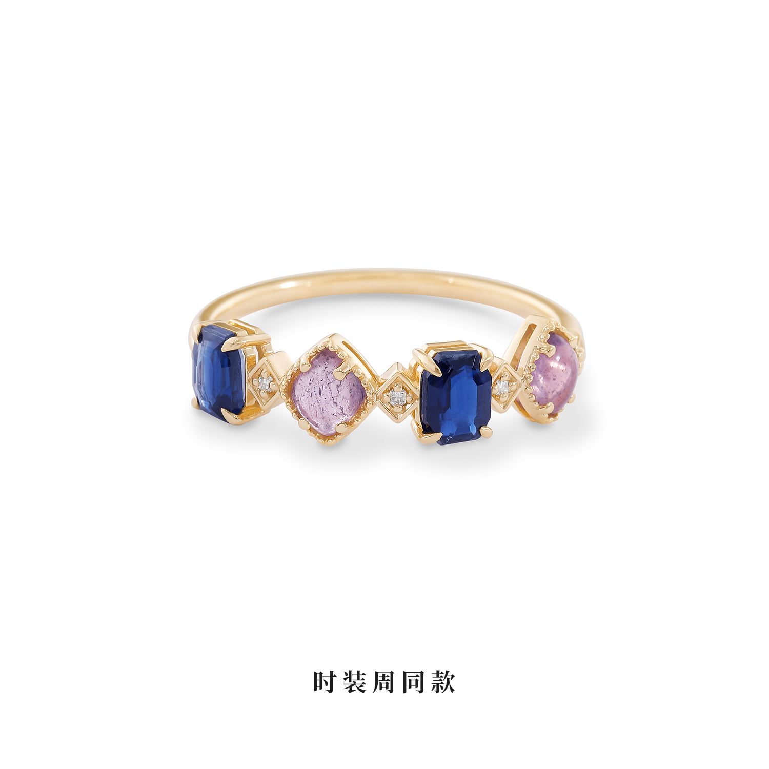 原创的玫瑰切割,奢华宝石的戒指。整体柔和的色调,或大或小的玫瑰切割宝石交错镶嵌,让人感受到其带来的动感魅力。