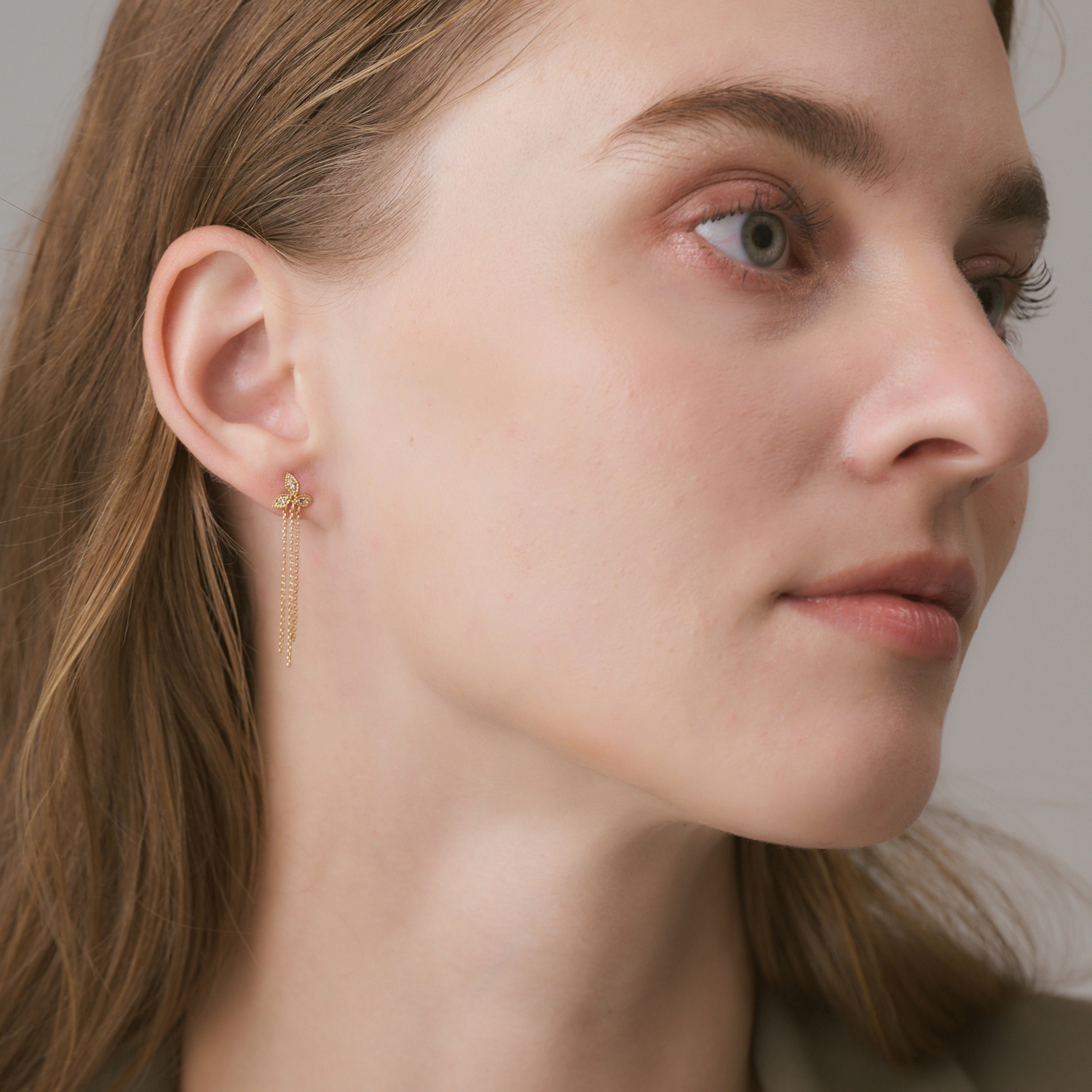 三缕奢华流苏链条轻盈垂坠,光影流动间尽显高雅瑰丽气质。