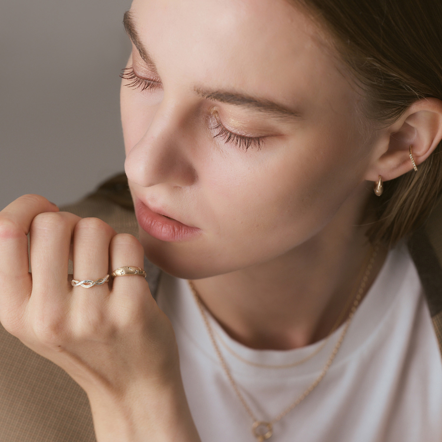 即使是休闲装扮,仅佩戴这一枚戒指也可营造松弛感十足的时尚氛围。