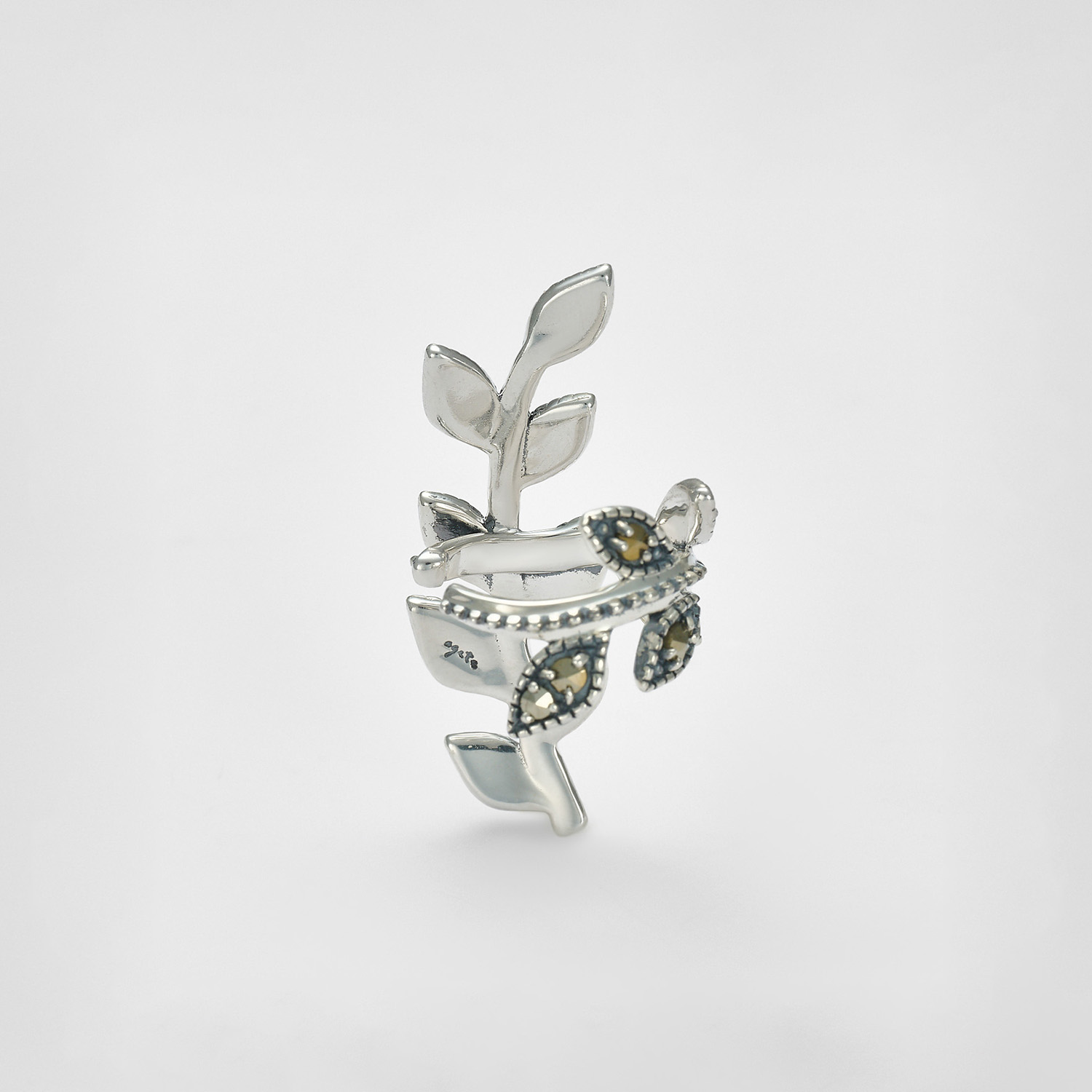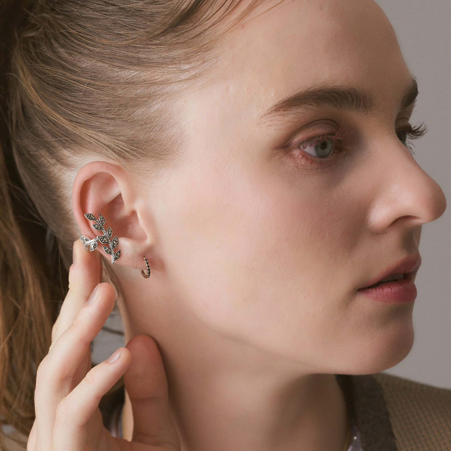 沿着耳廓勾勒优美线条的叶片造型的耳骨夹。