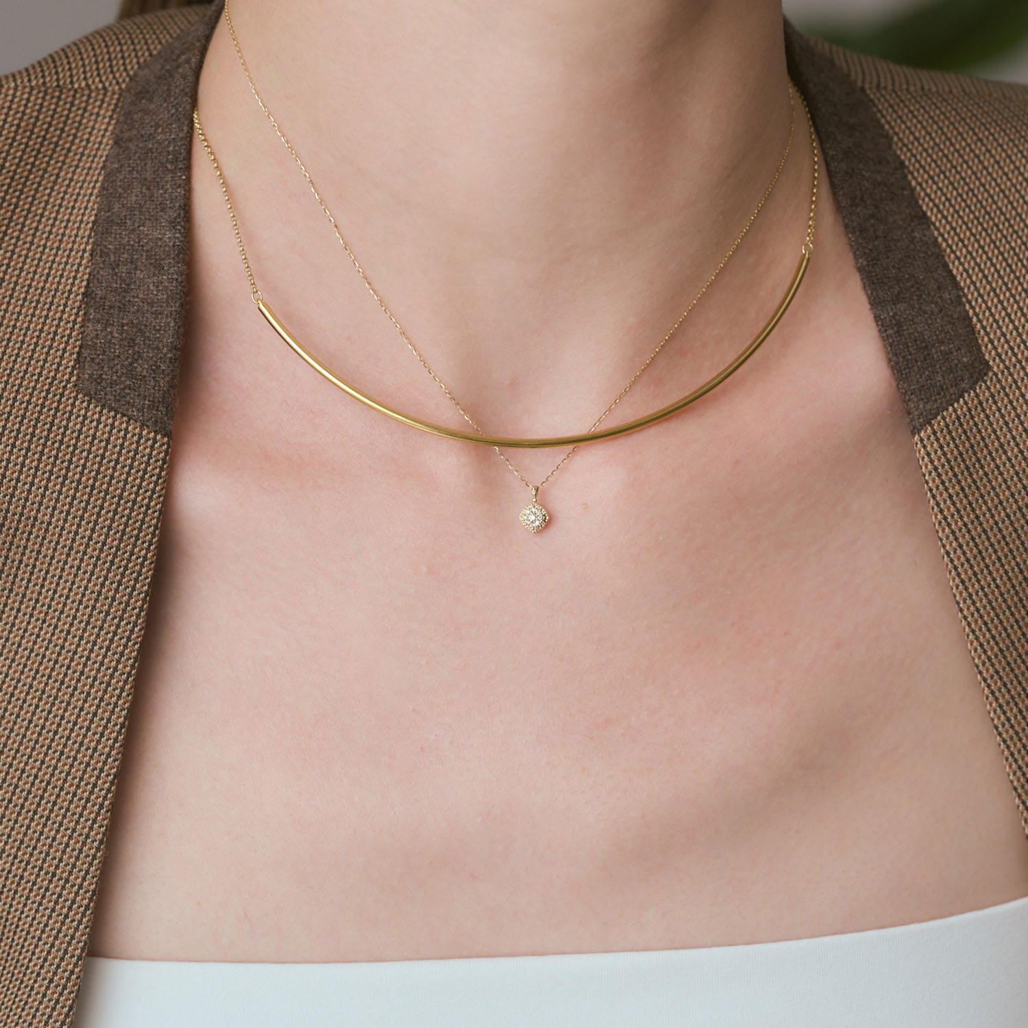 运用象征石砌路面的密镶工艺,将钻石紧密排列镶嵌。随着身体的转动,钻石绽放出细碎光芒,轻