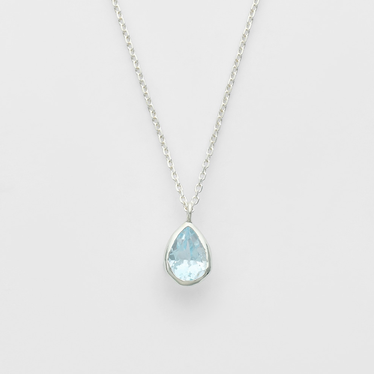 这款项链镶嵌着天蓝色托帕石,