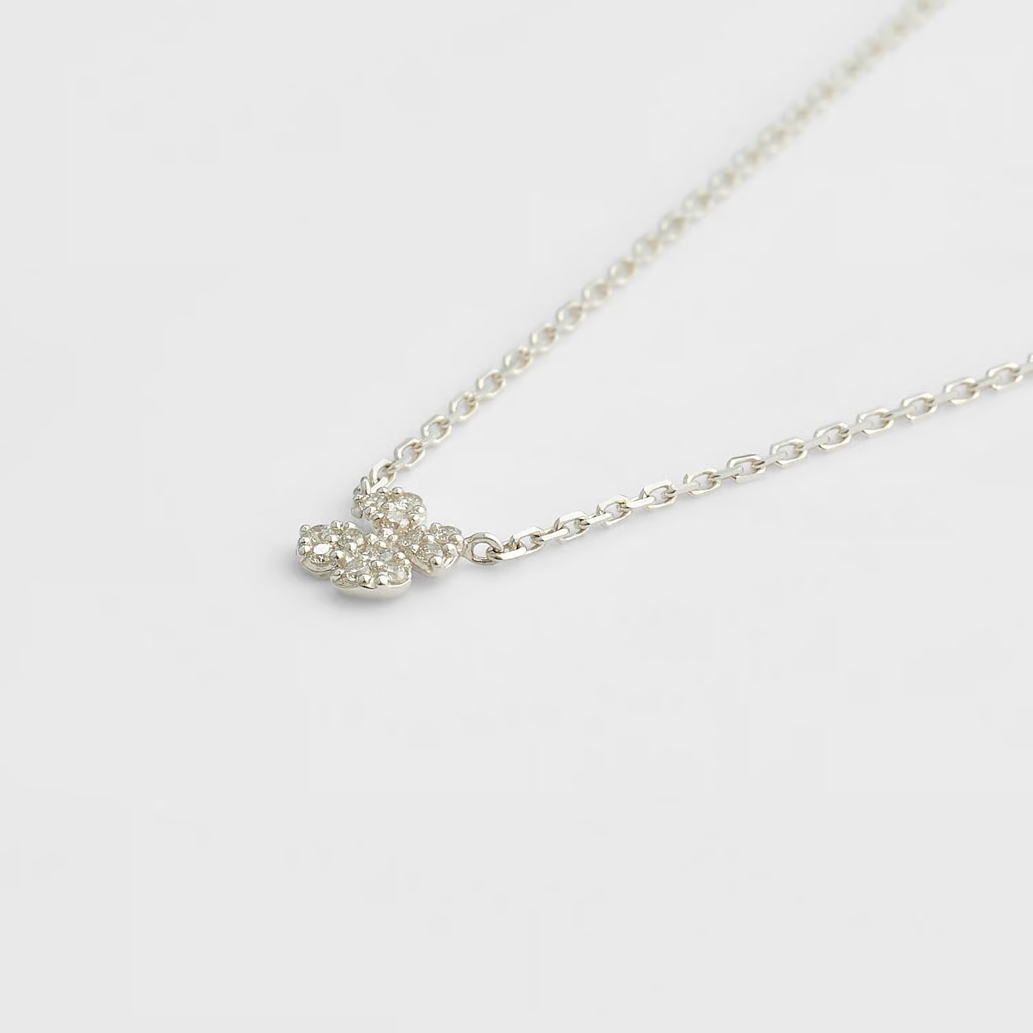 四叶草造型的钻石项链。采用紧密镶嵌的技法,