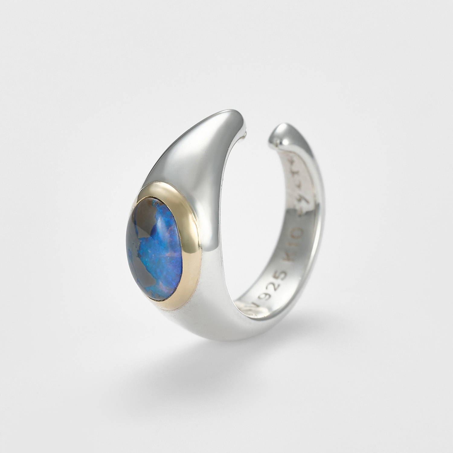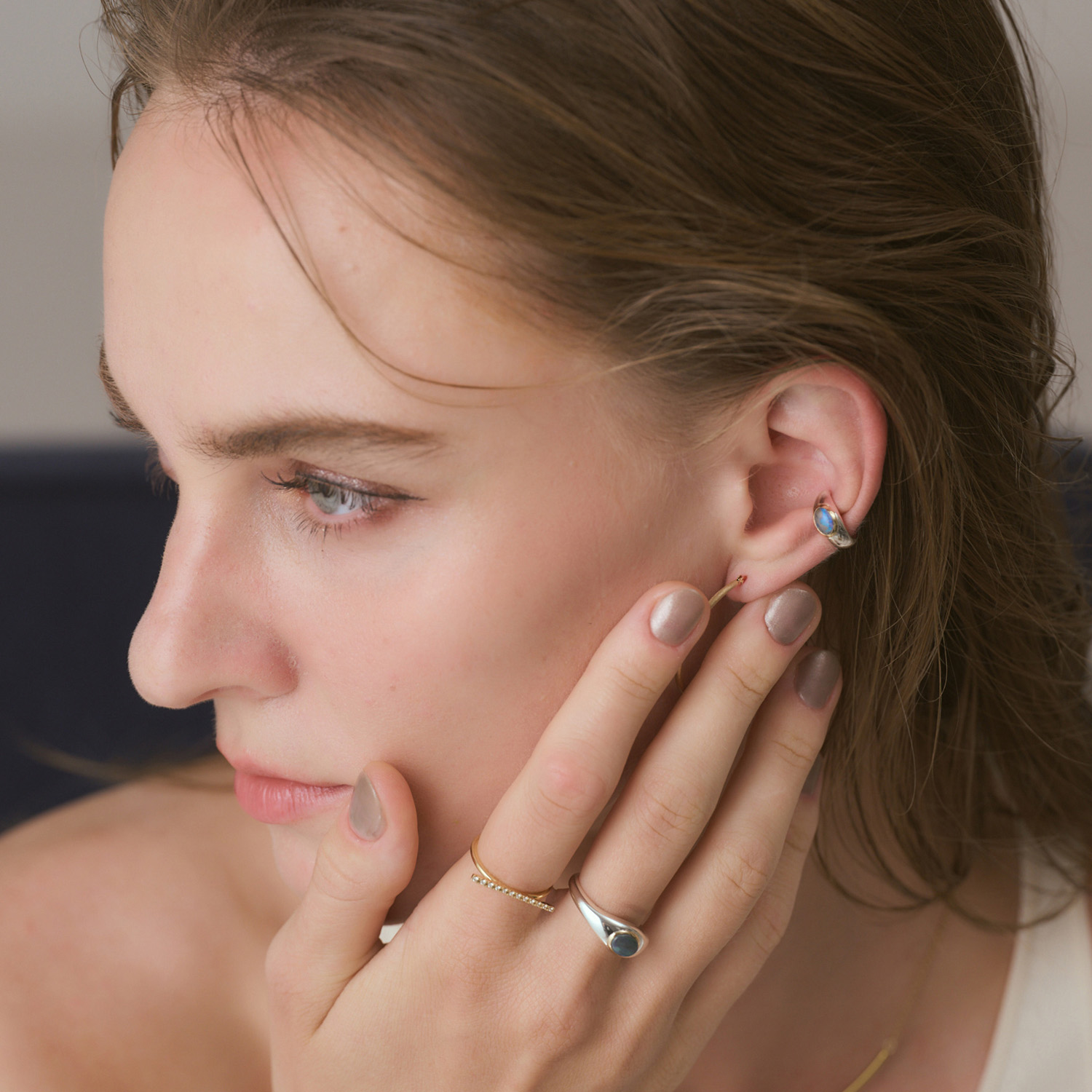 本系列以深色蛋白石打造出富有量感的戒指与耳骨夹,通过精炼平衡的造型呈现出摩登质感。