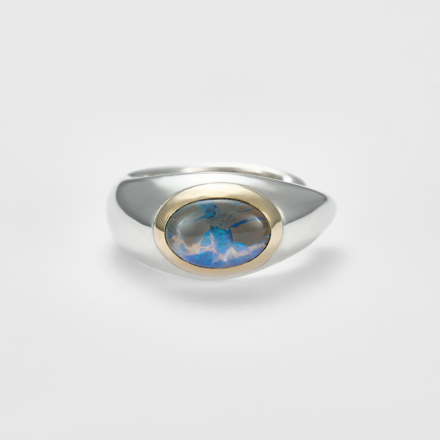 宝石周围以10K金镶嵌勾勒,更衬托出深色蛋白石的浓郁色泽。