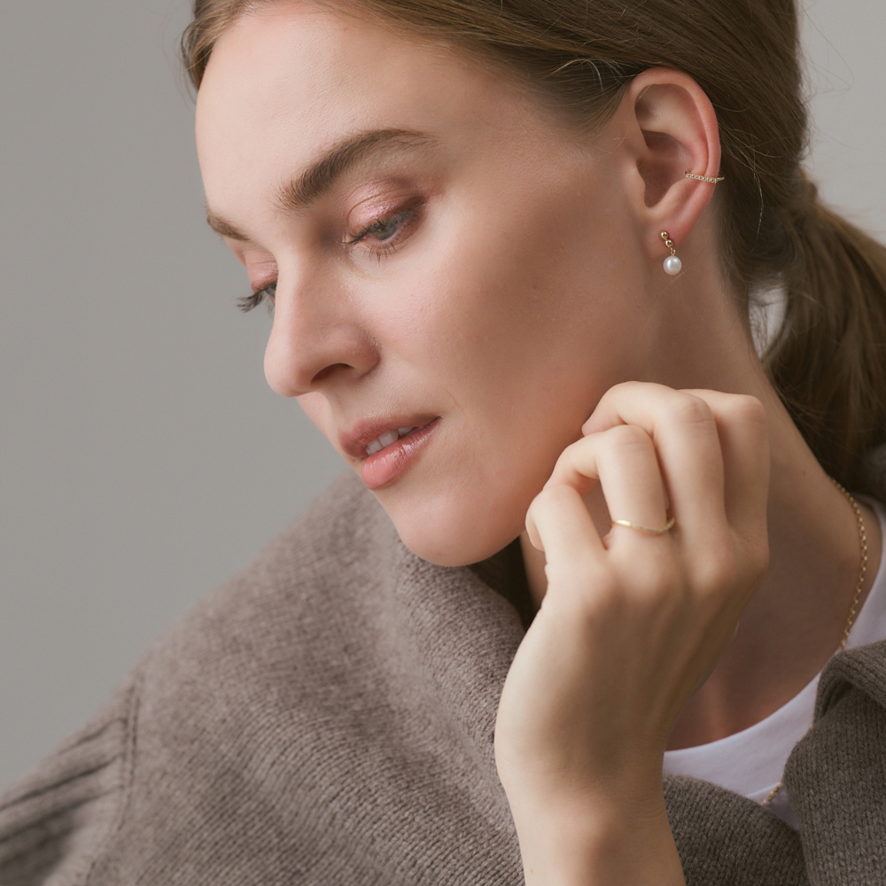 以汇聚的水滴垂落瞬间为灵感打造的珍珠耳钉,