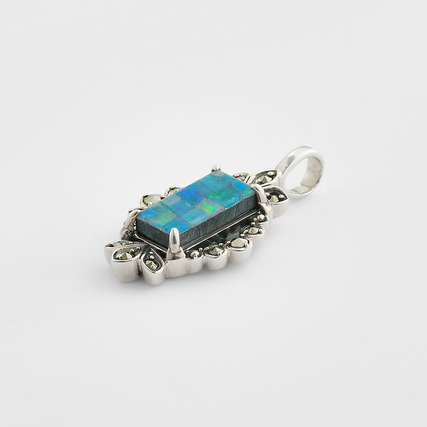 宛如将梦境景色凝固在方形马赛克蛋白石中,细碎的蛋白石光影交织,营造出迷人的闪耀效果。