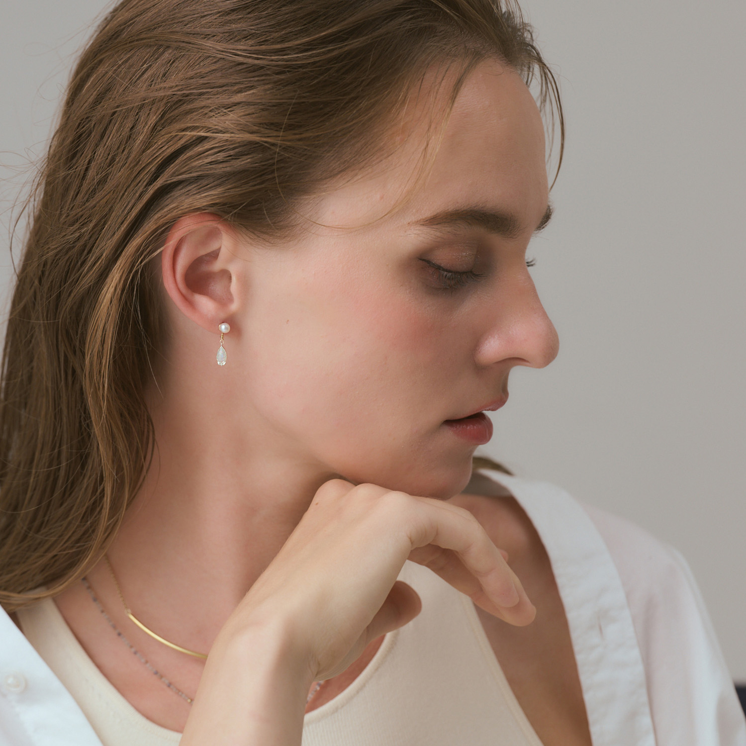 以春日原野上柔美的白色小花為靈感所設計的耳墜。