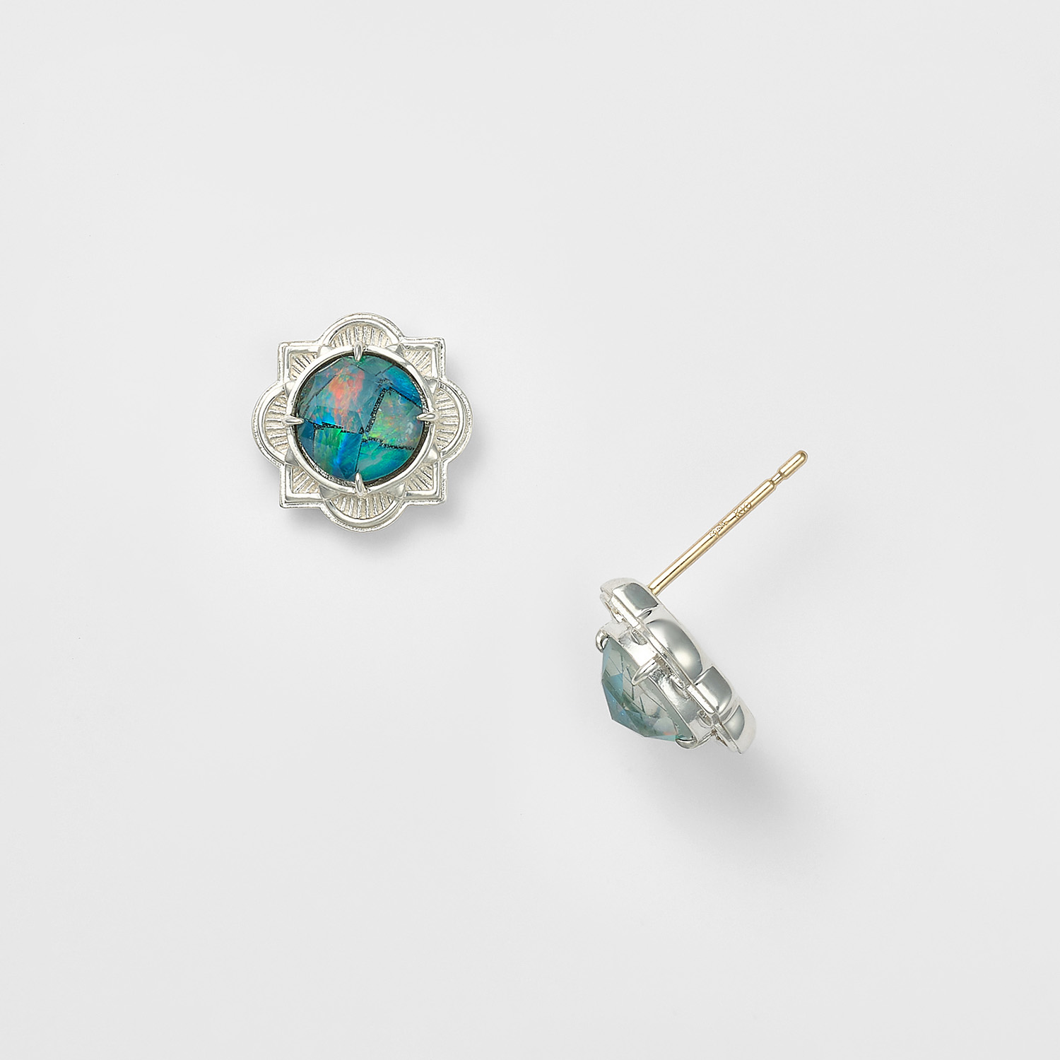 将马赛克蛋白石镶嵌于如画框般的银色边框中,即便是初次尝试此类宝石的佩戴者,也能轻松驾驭其精巧适中的尺寸。
