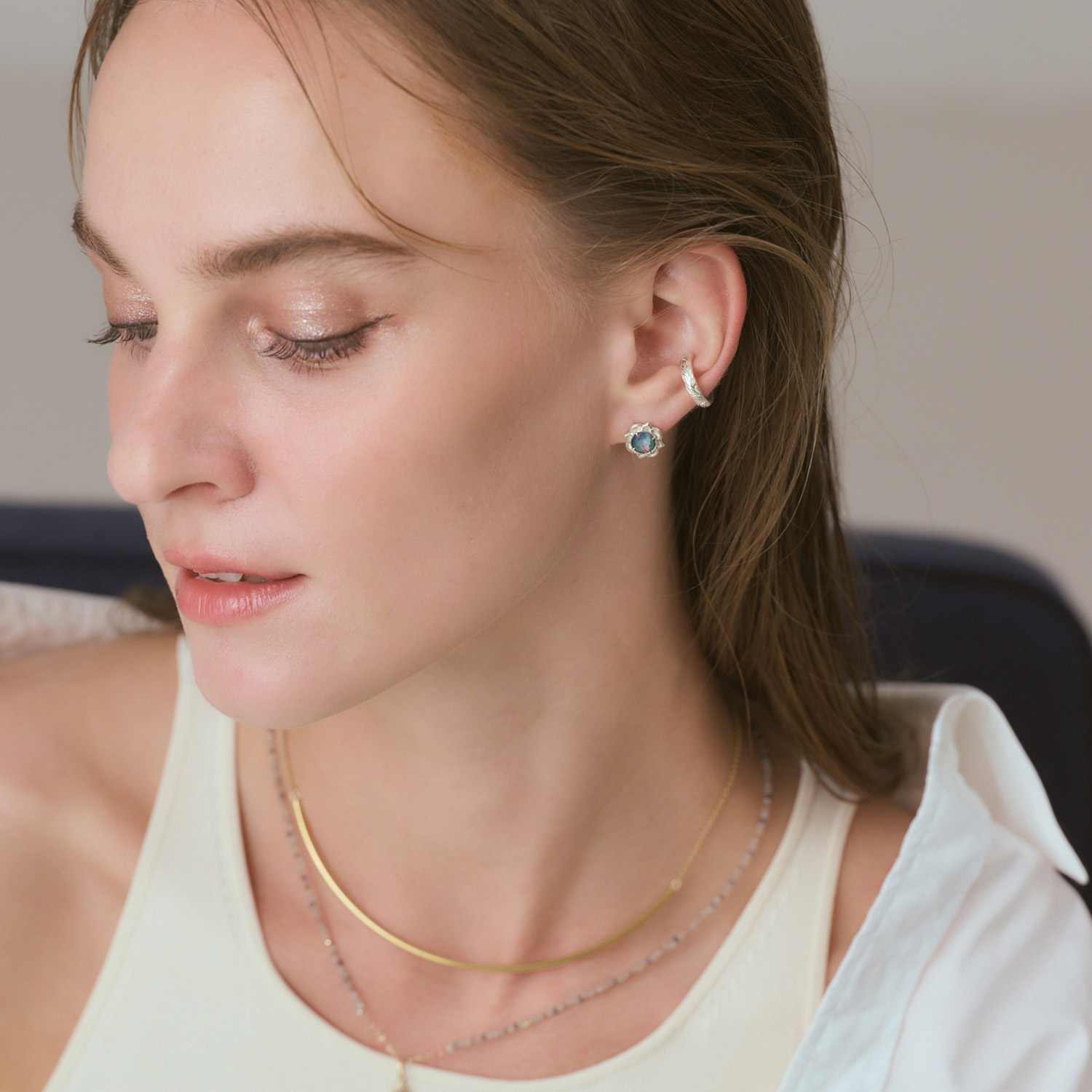 。在绿色在绿色水晶的清爽光泽中,蘊含马赛克蛋白石独有的深邃层次,表达出本季主題「情感的波动」与「光影的交错」。