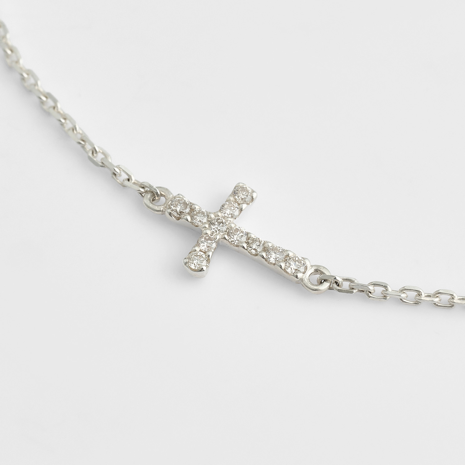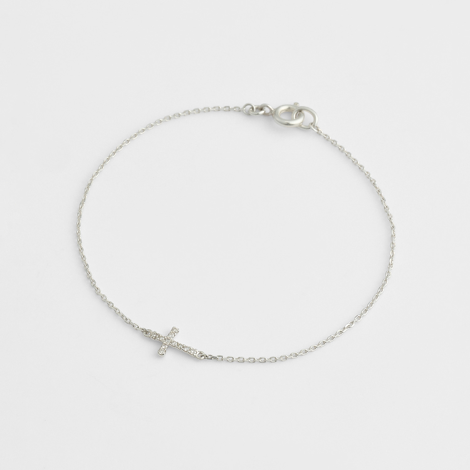 十字架造型的钻石手链。采用紧密镶嵌的技法,
