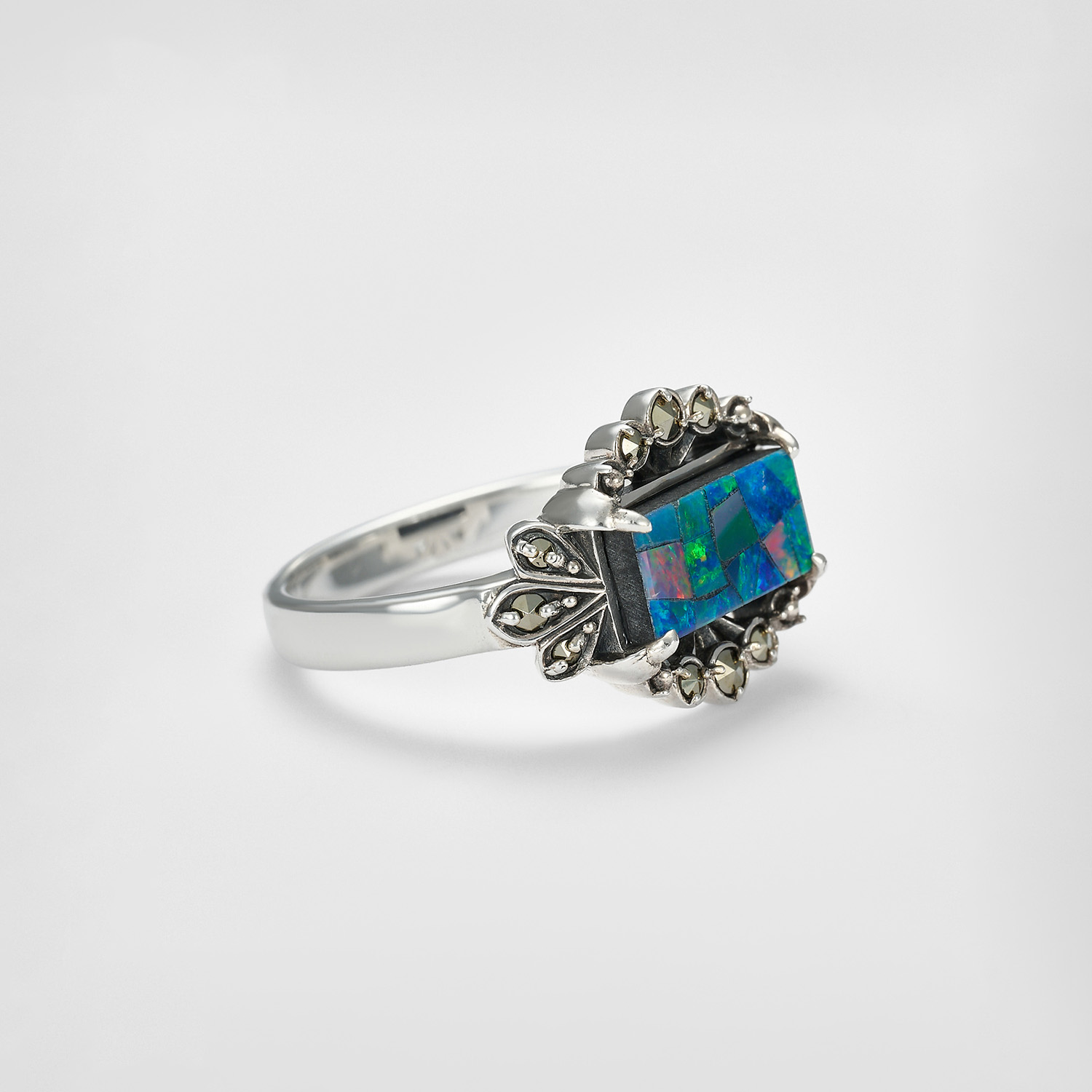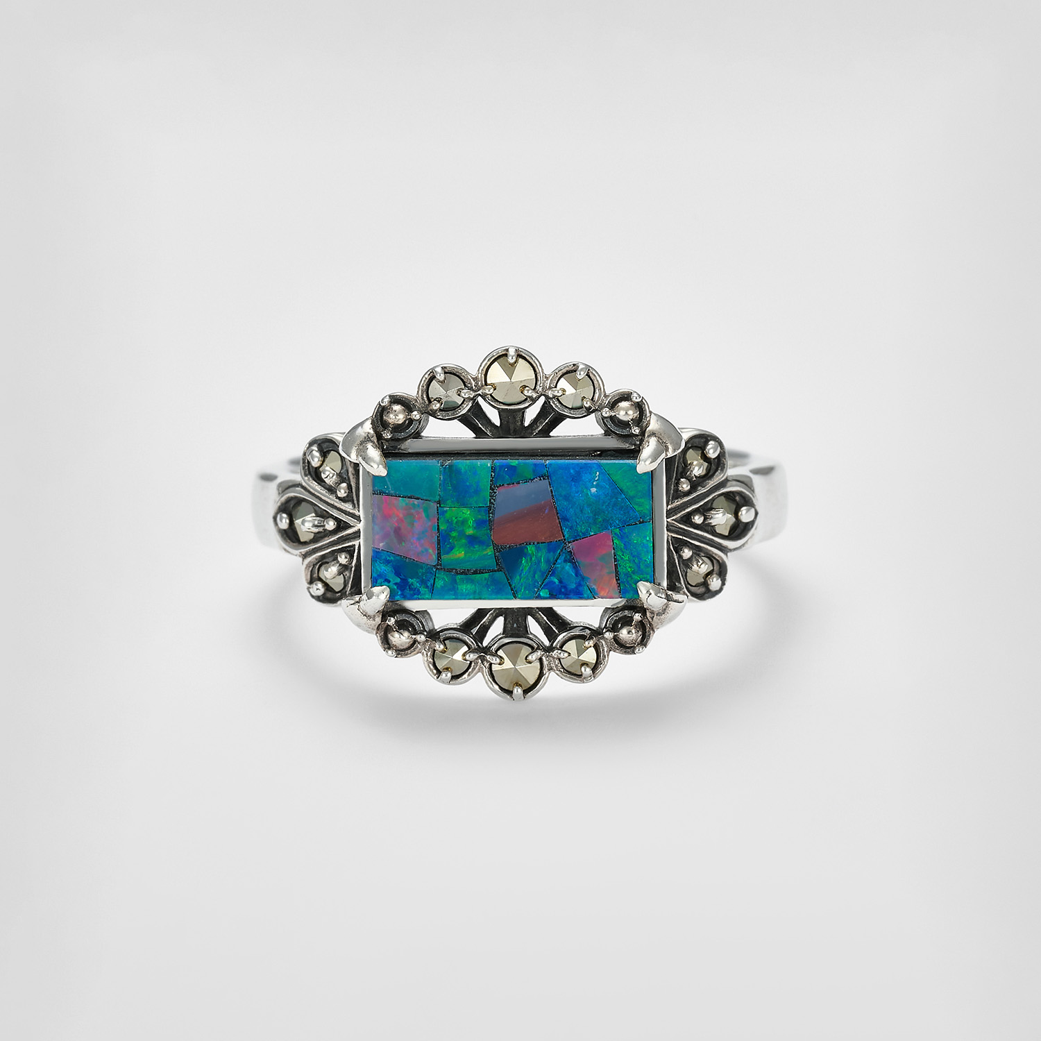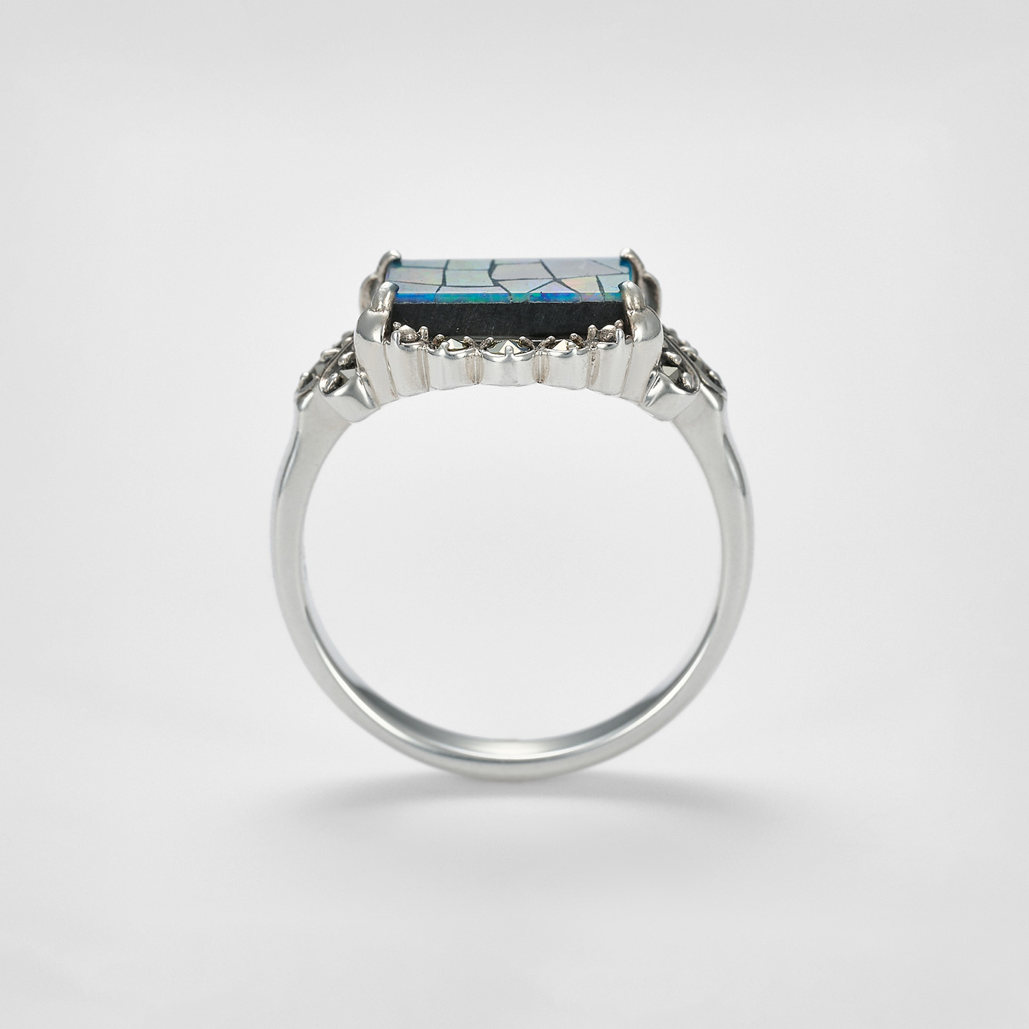 宛如将梦境景色凝固在方形马赛克蛋白石中,细碎的蛋白石光影交织,营造出迷人的闪耀效果。