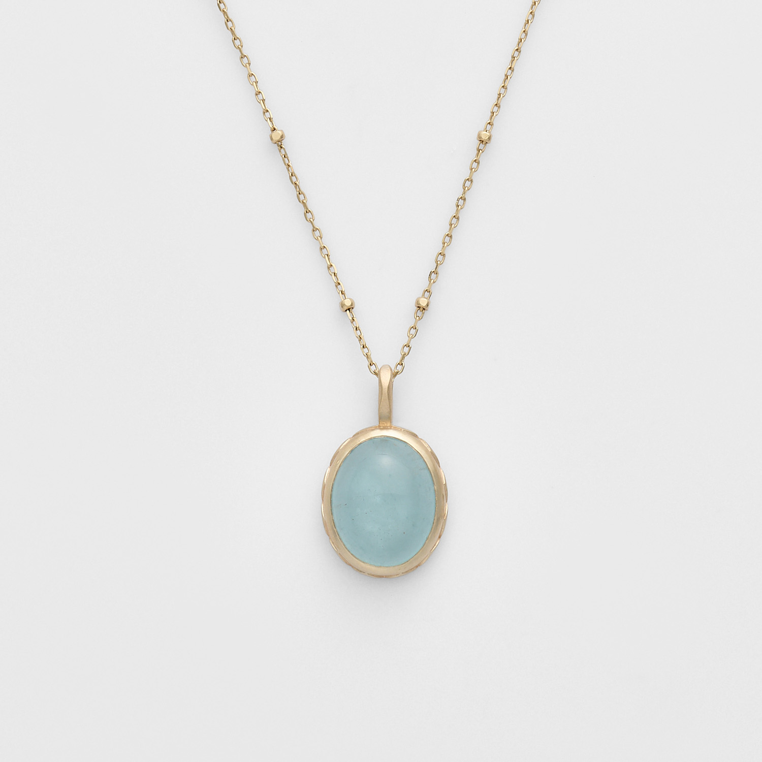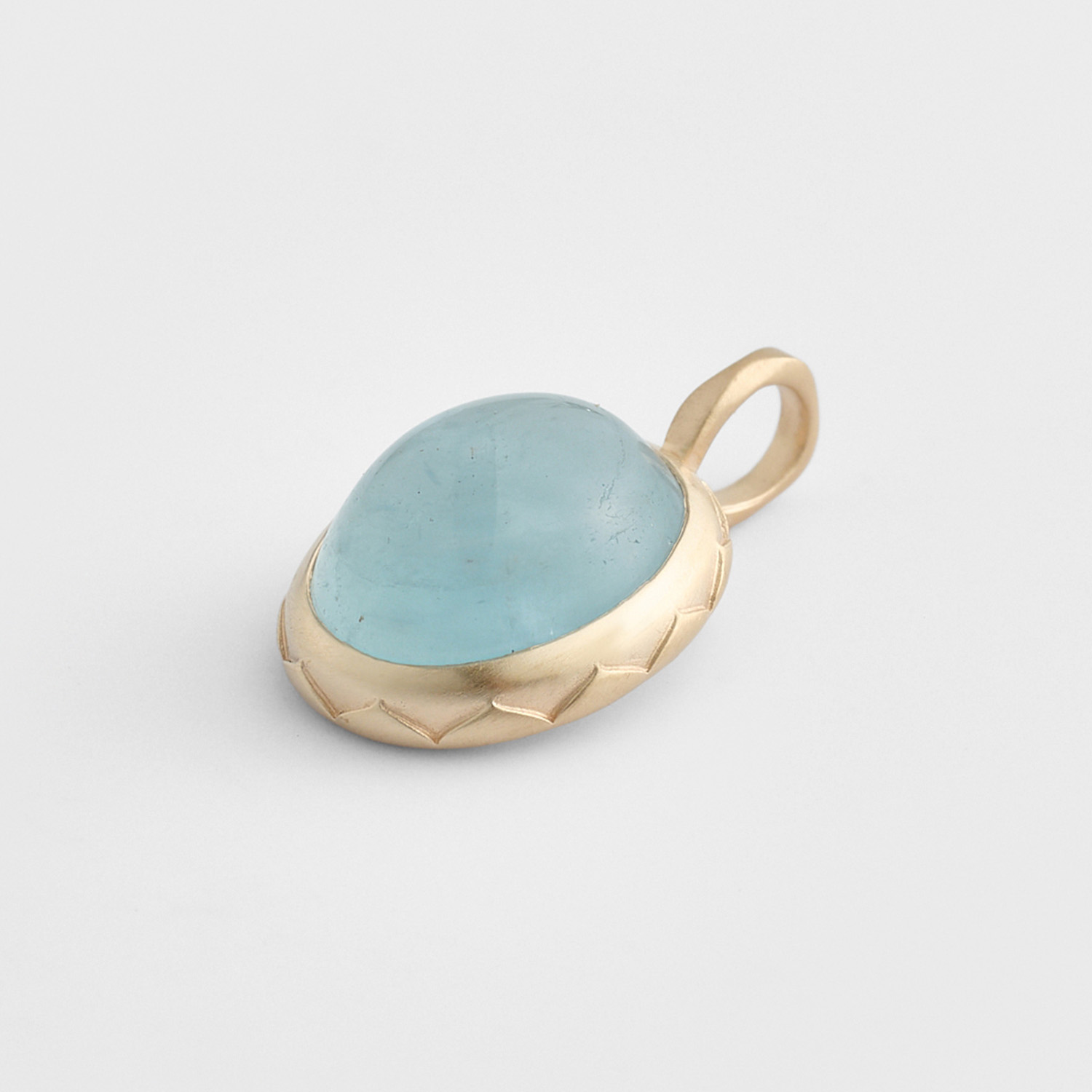 淡蓝色海蓝宝石采用凸圆型切割,更显水润生动,