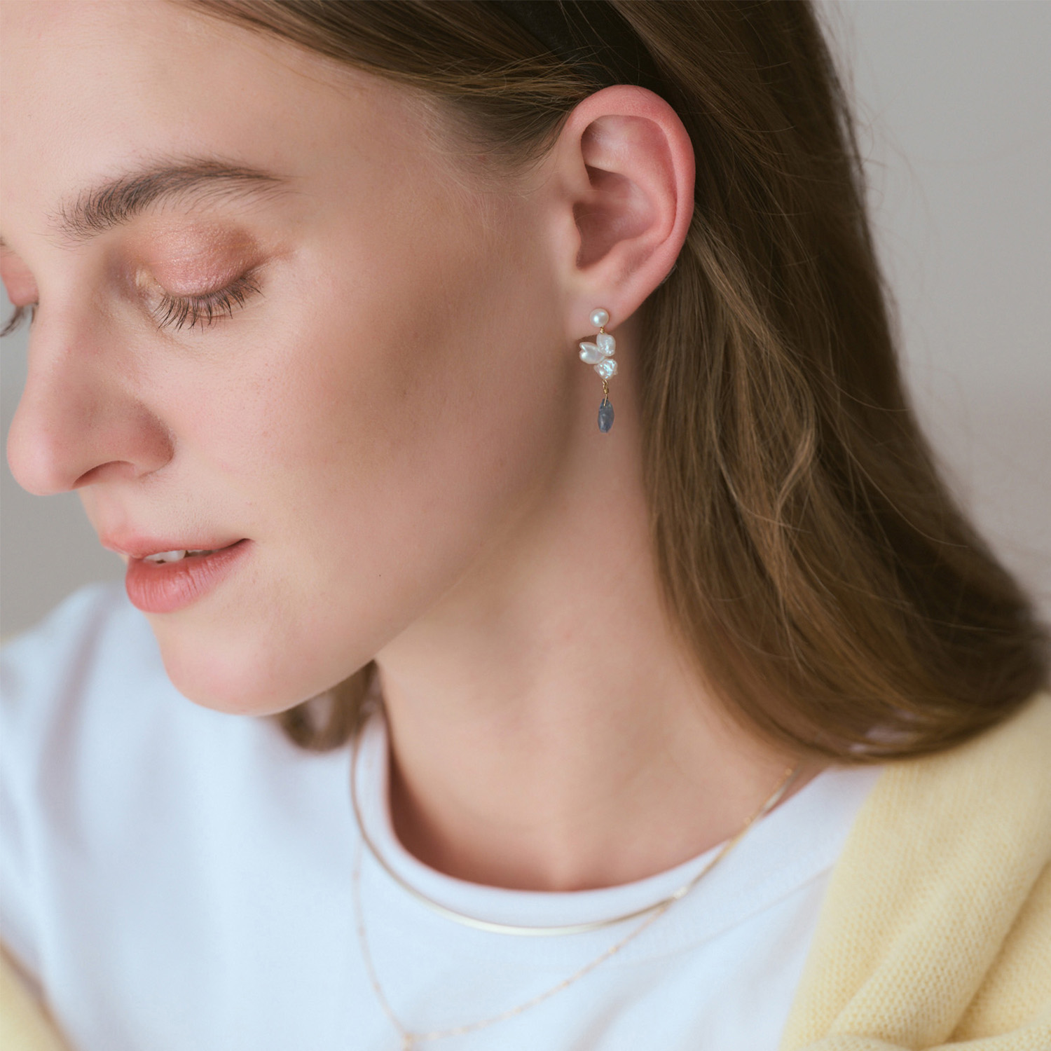 款号:1026111703598 材质: 9K金×包金/螺旋线×海蓝宝石×淡水珍珠