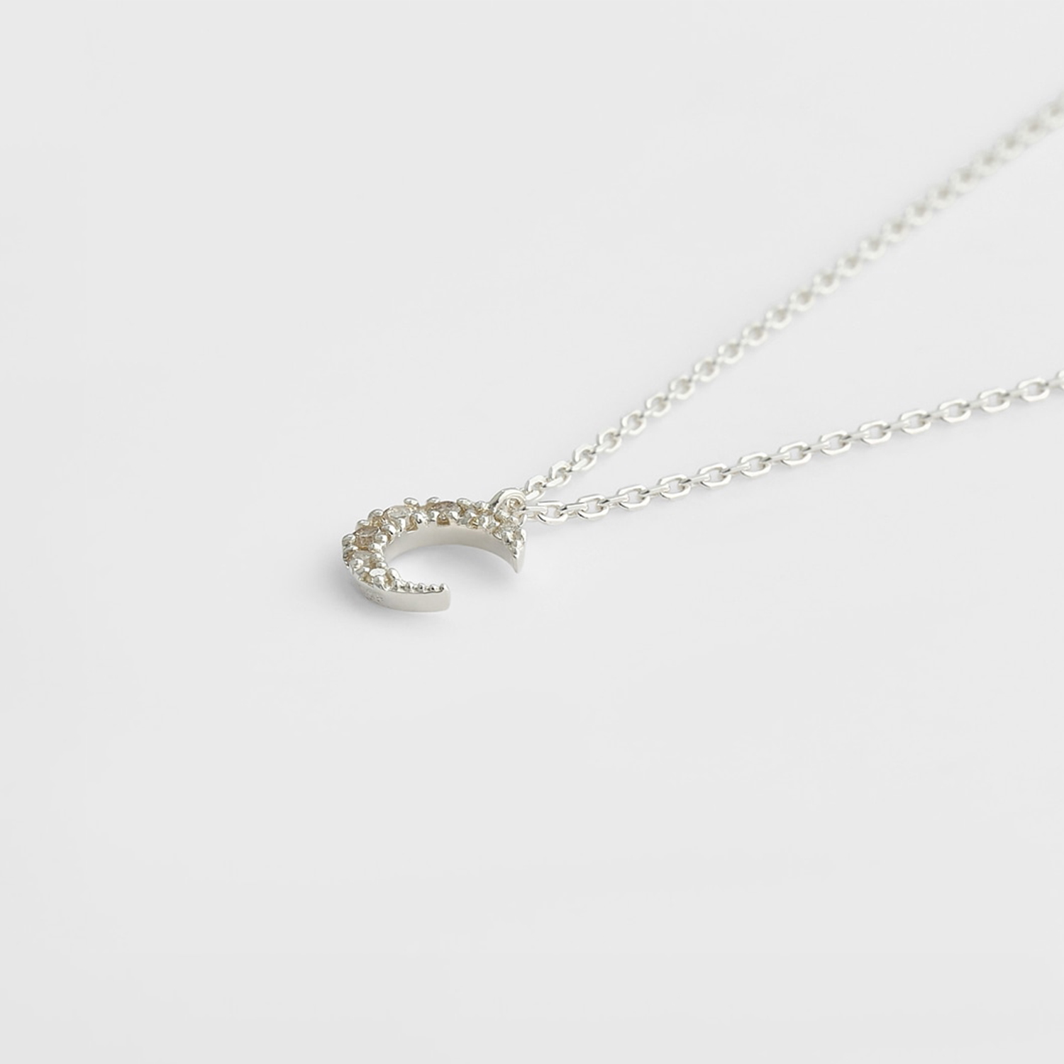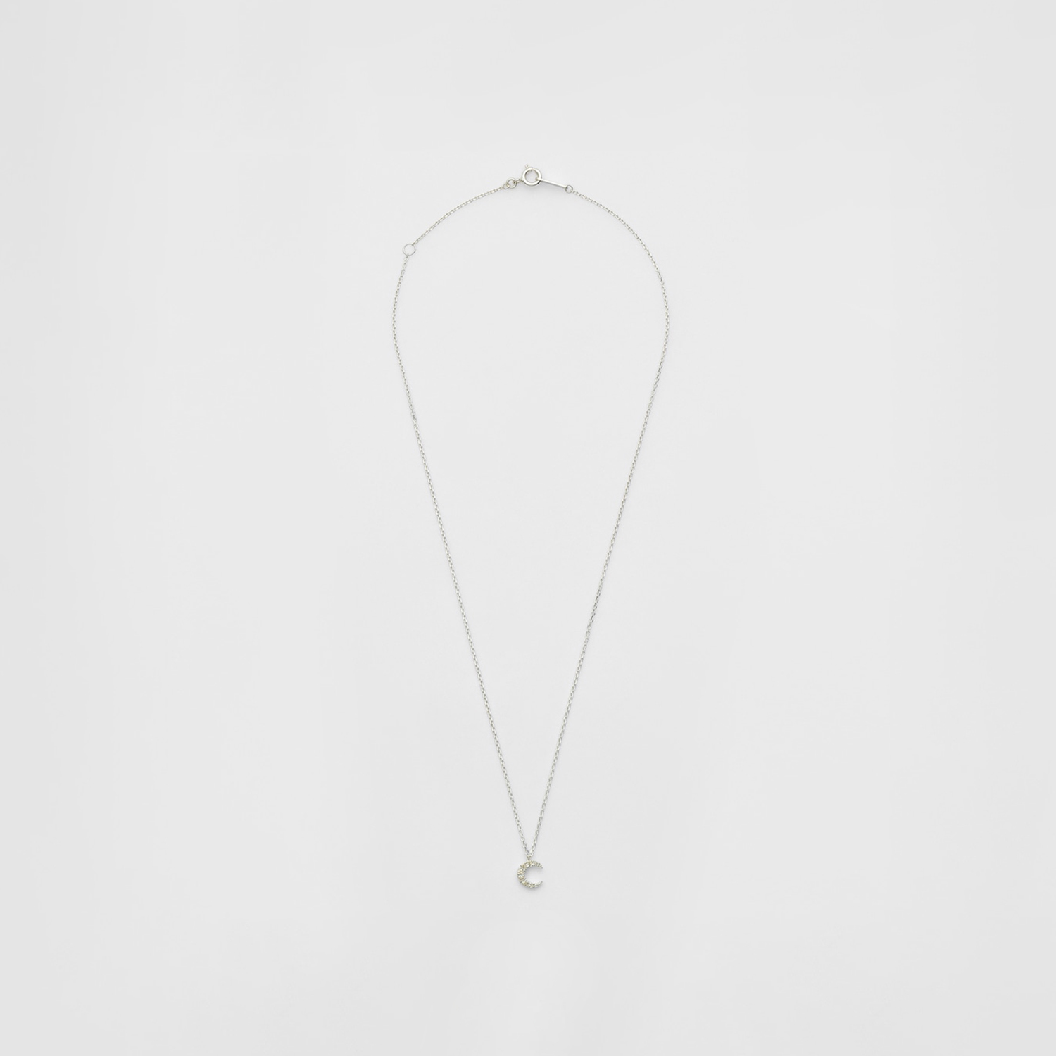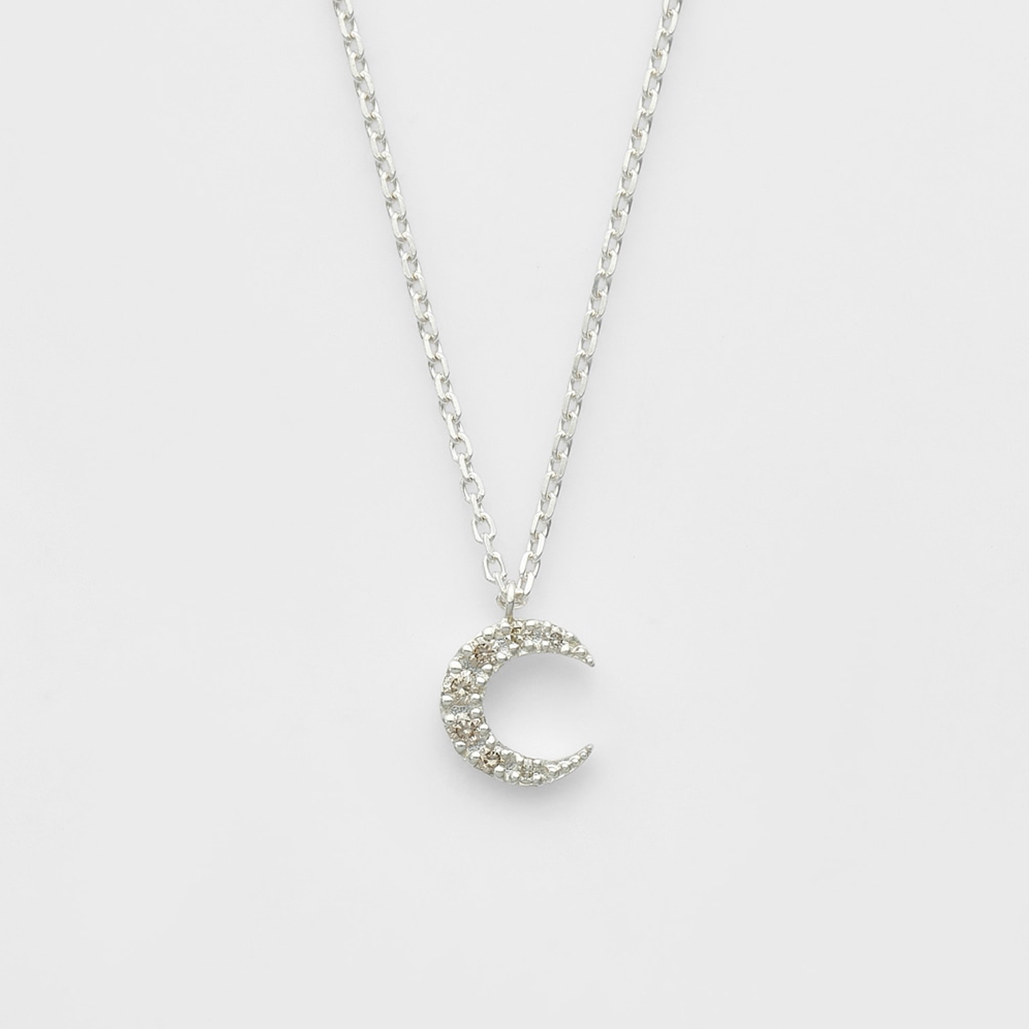 一条银质钻石项链,设计灵感源自夜空中悬挂的弯月。
