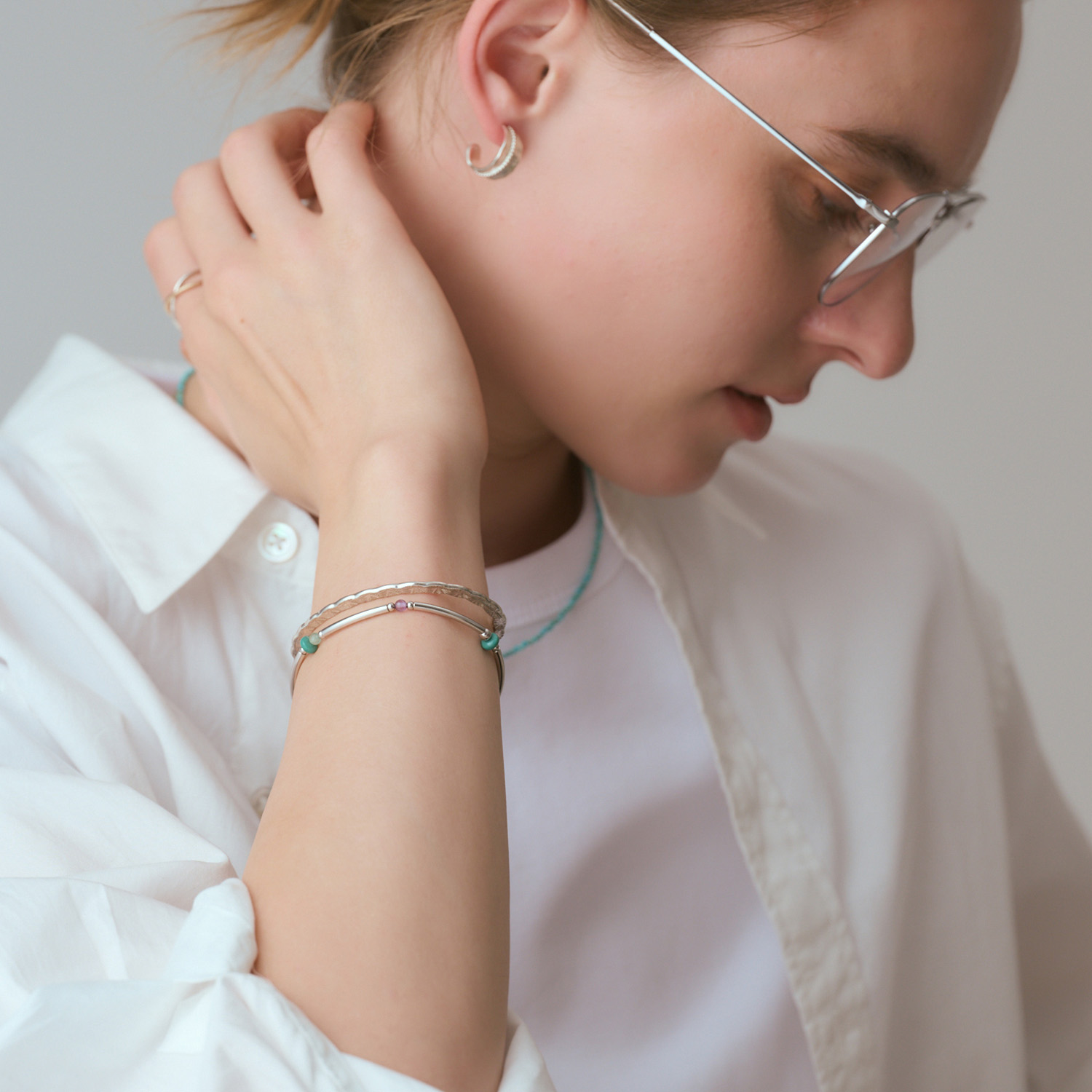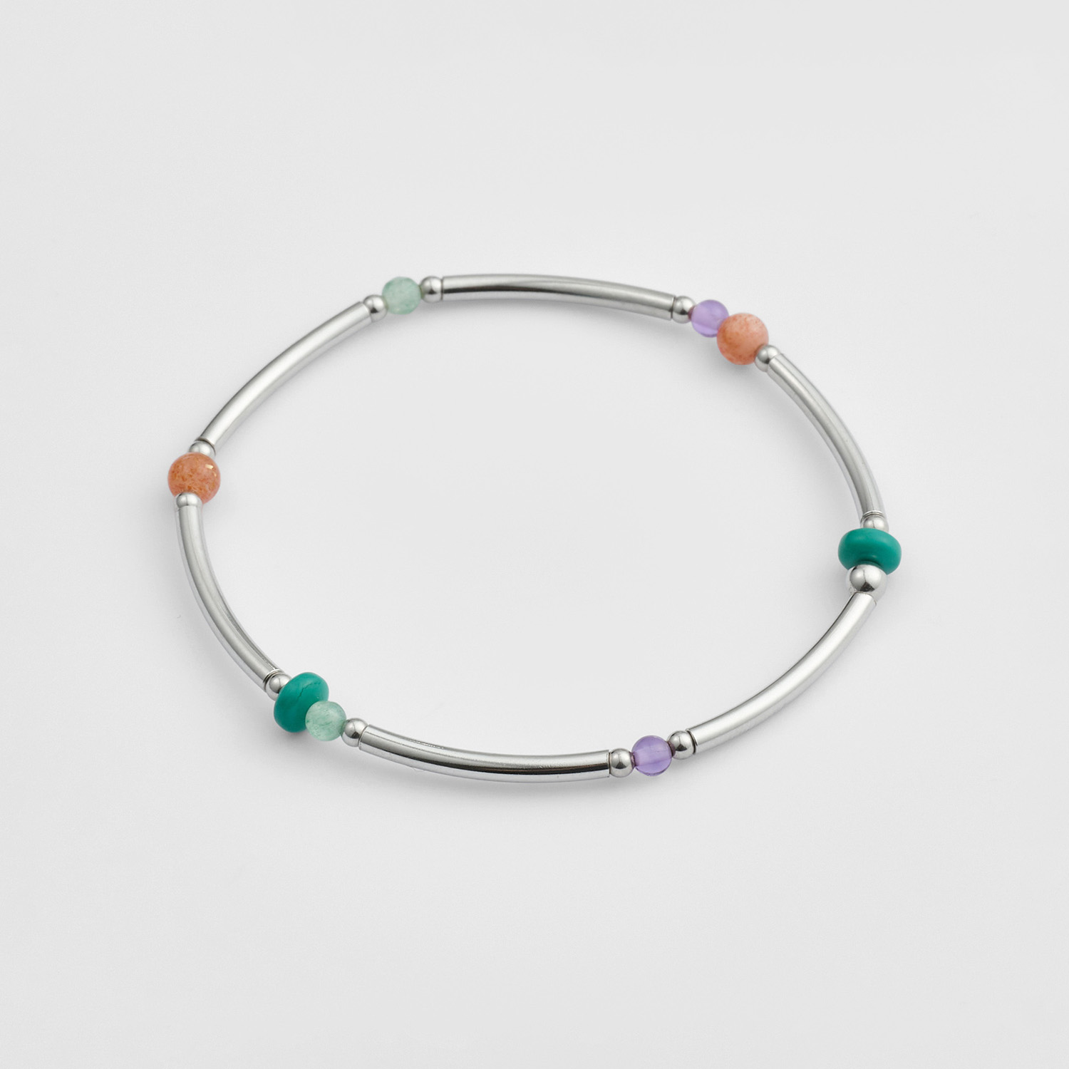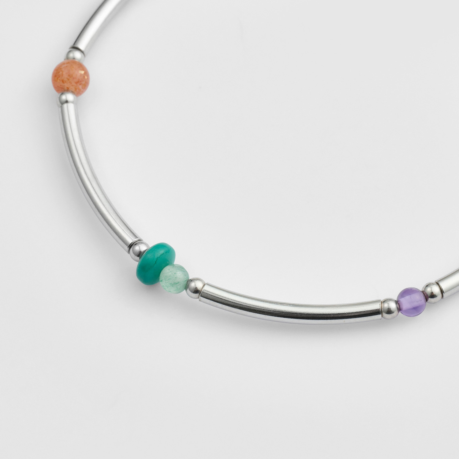 款号:1026211411898 材质: 黄铜(镀铑)×橡胶×绿松石×紫水晶×太阳石×星彩石英(绿色)