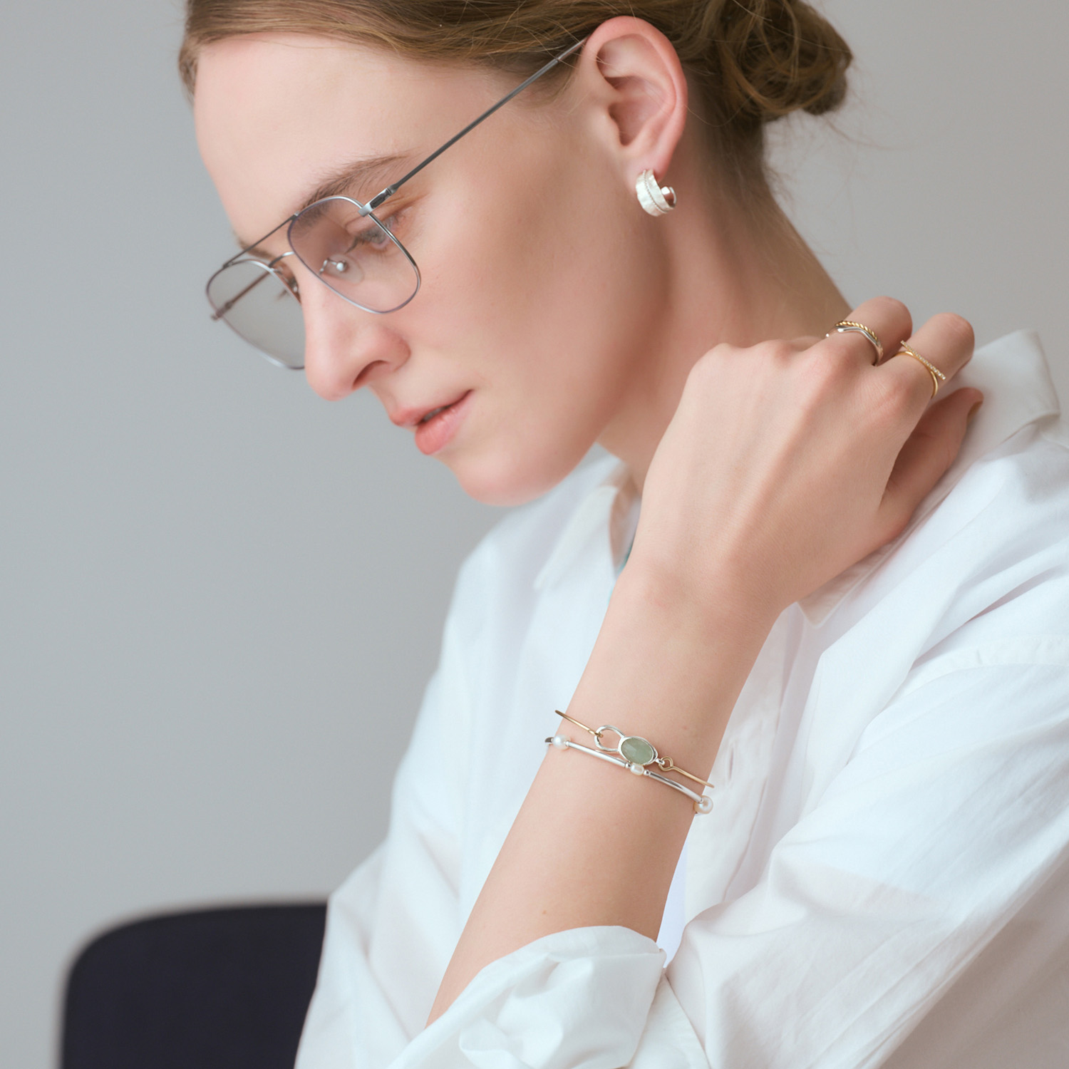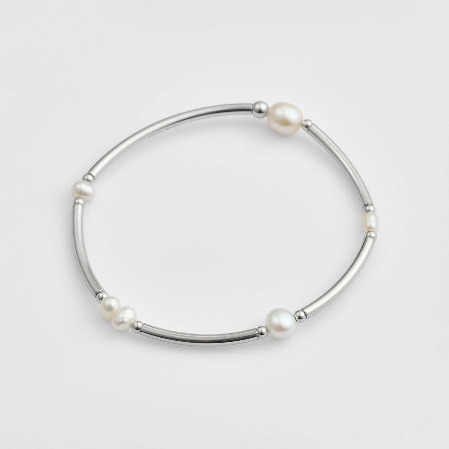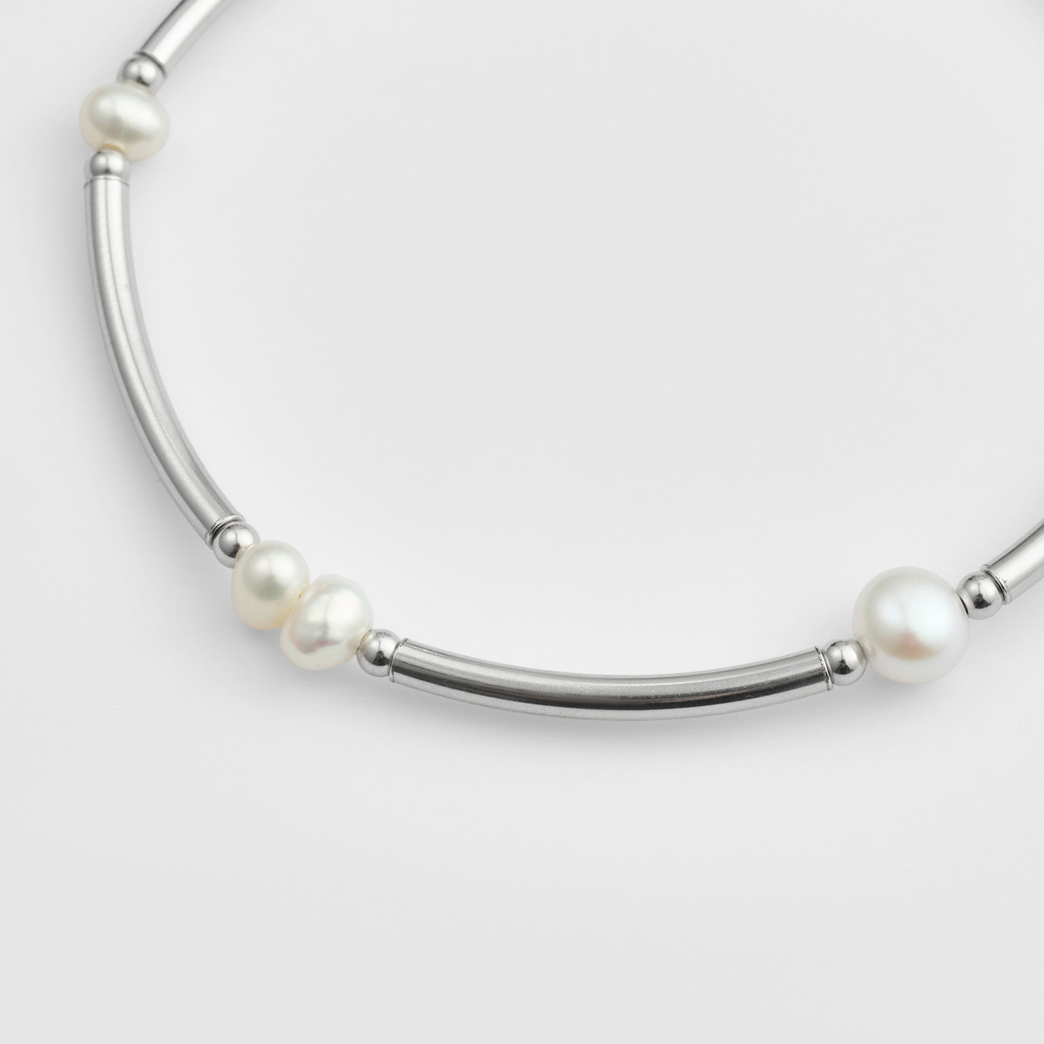 淡水珍珠富有韵律感的分布在充满时尚感的素银上,