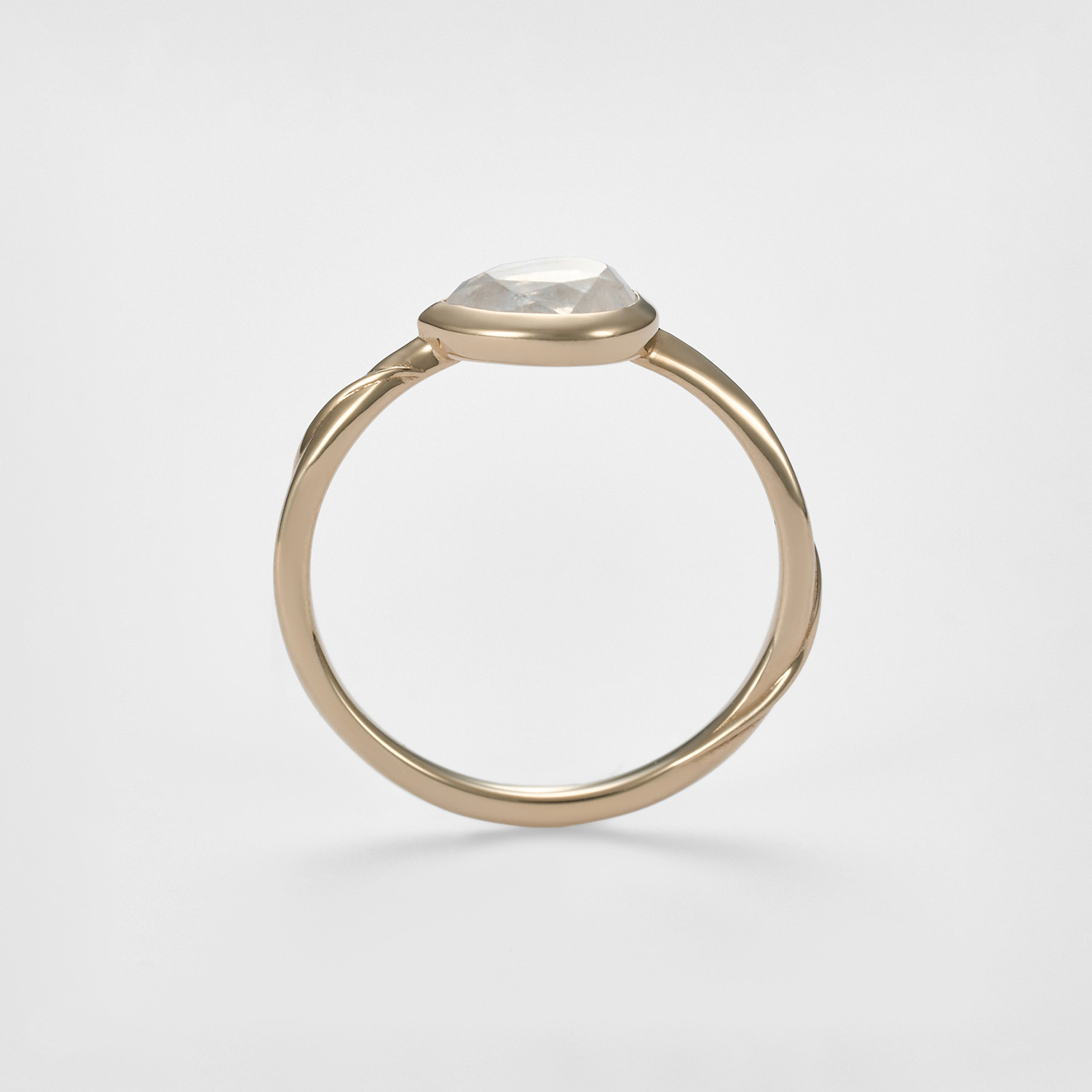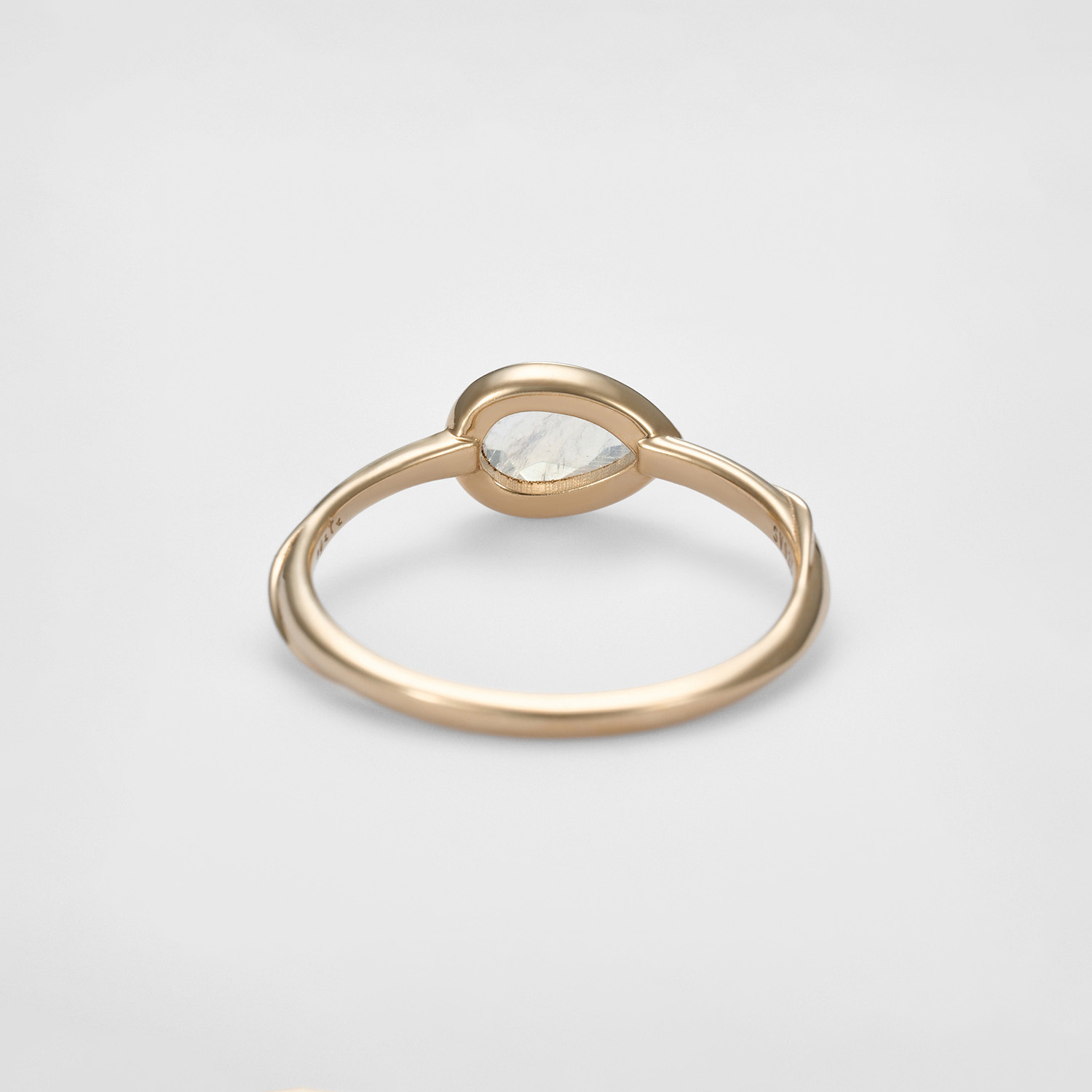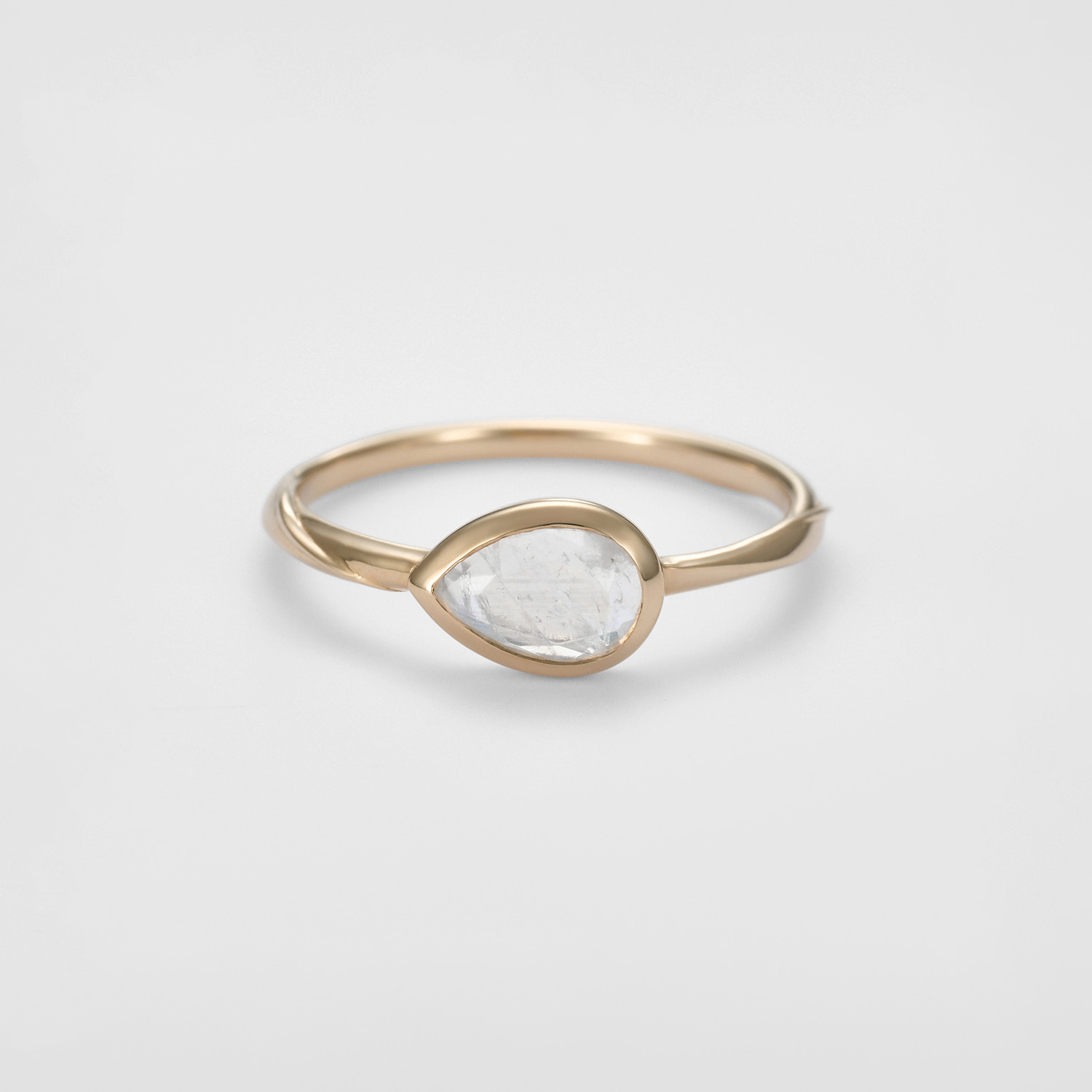 采用花瓣般的水滴型宝石,横向镶嵌,贴合手指,便于叠戴。