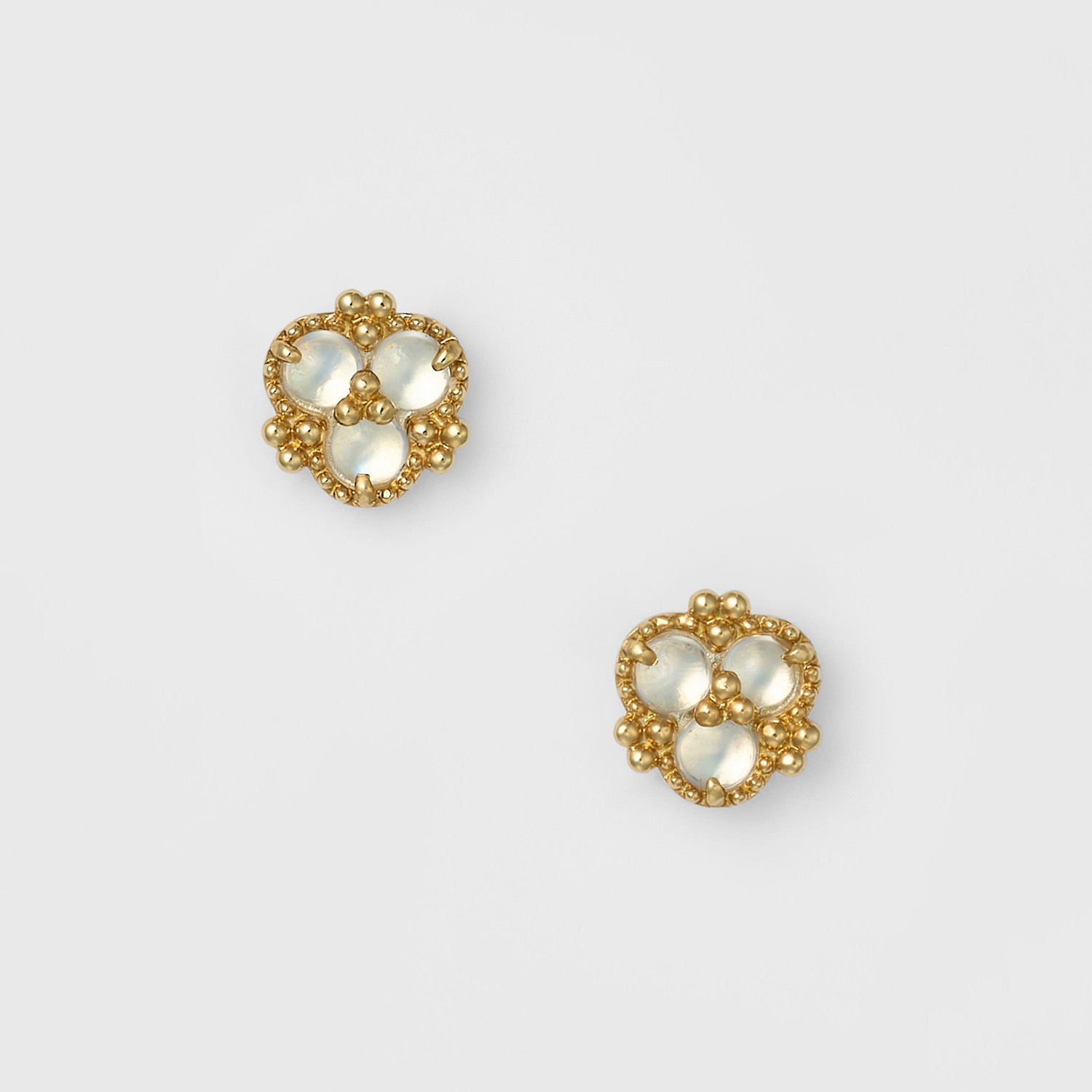 三颗宝石相聚成簇,点缀着圆珠装饰,打造出小巧可爱的耳钉。
