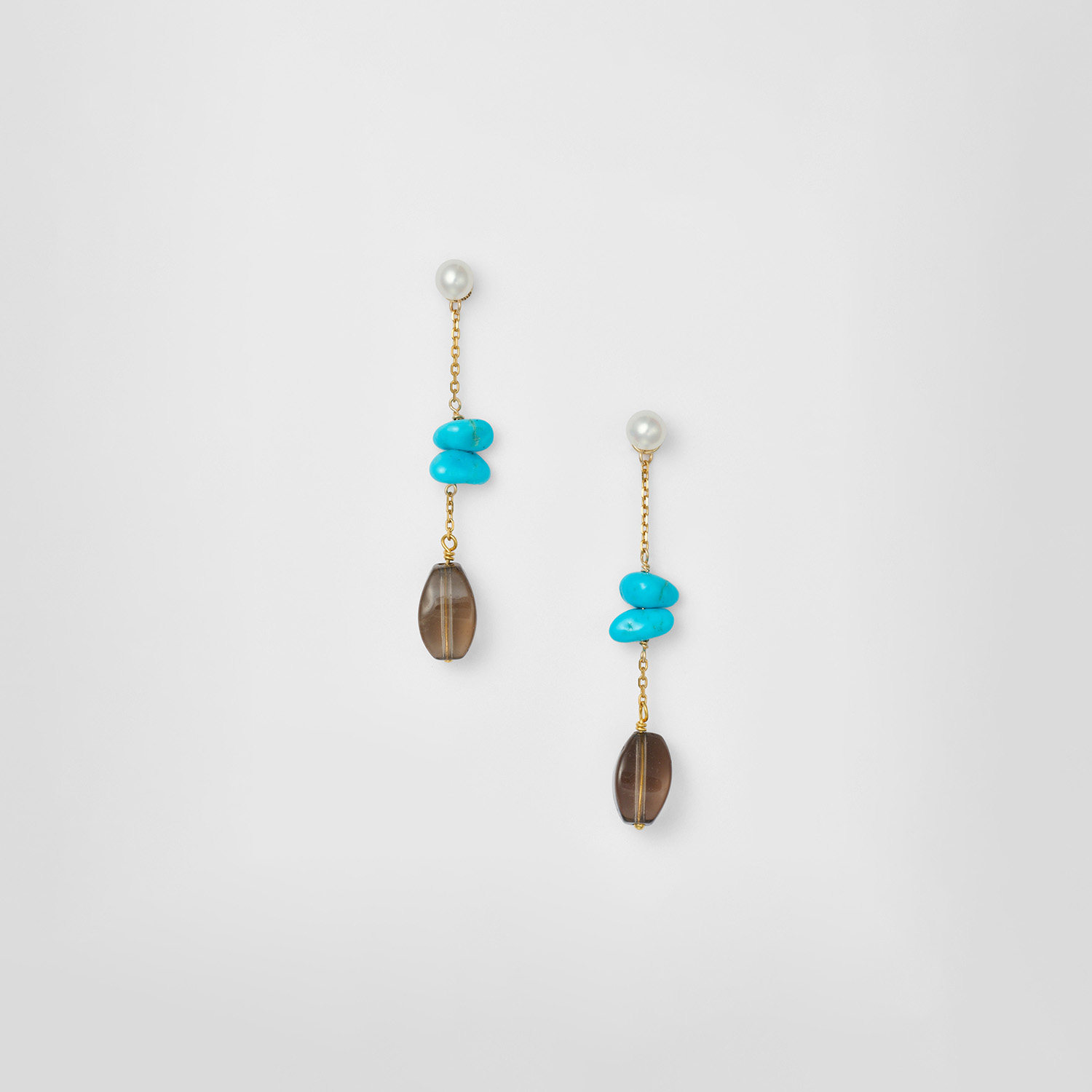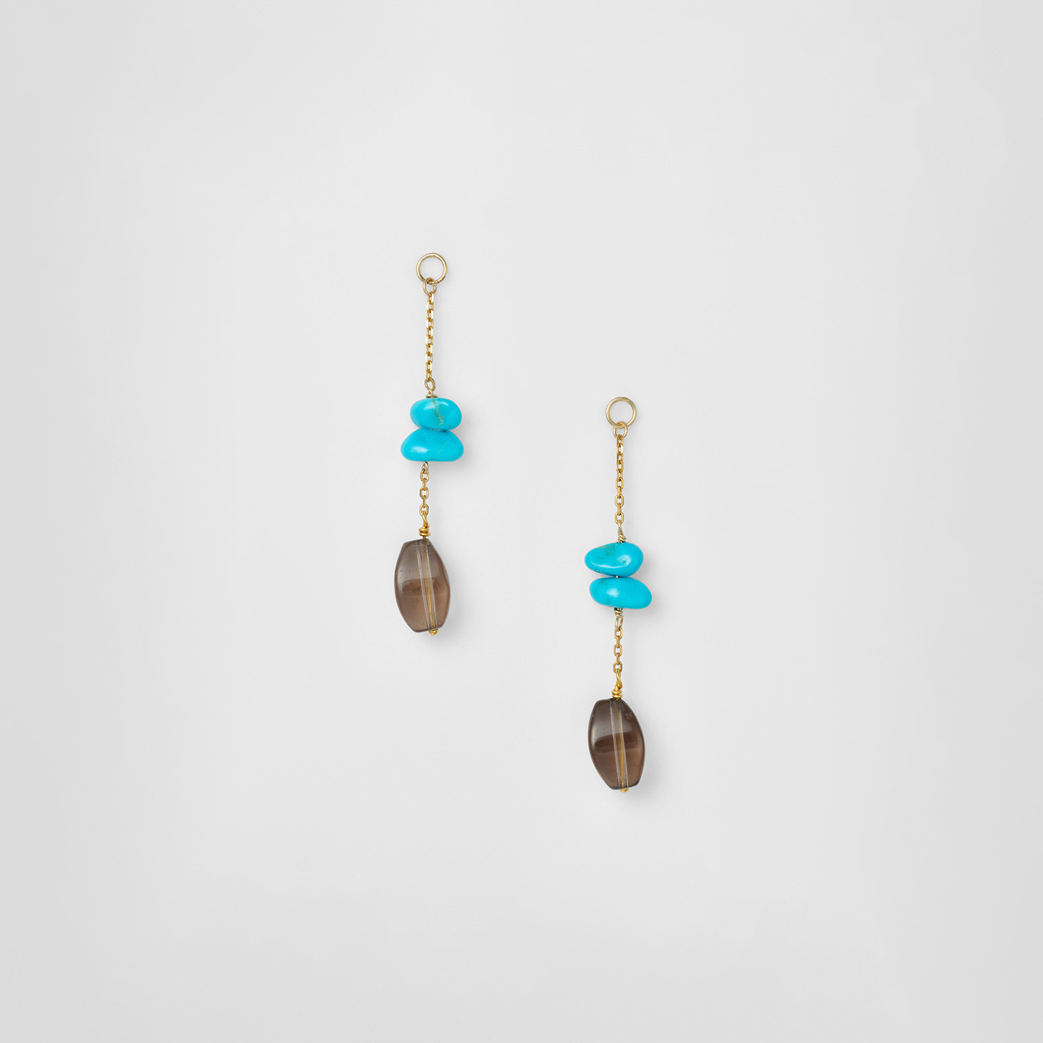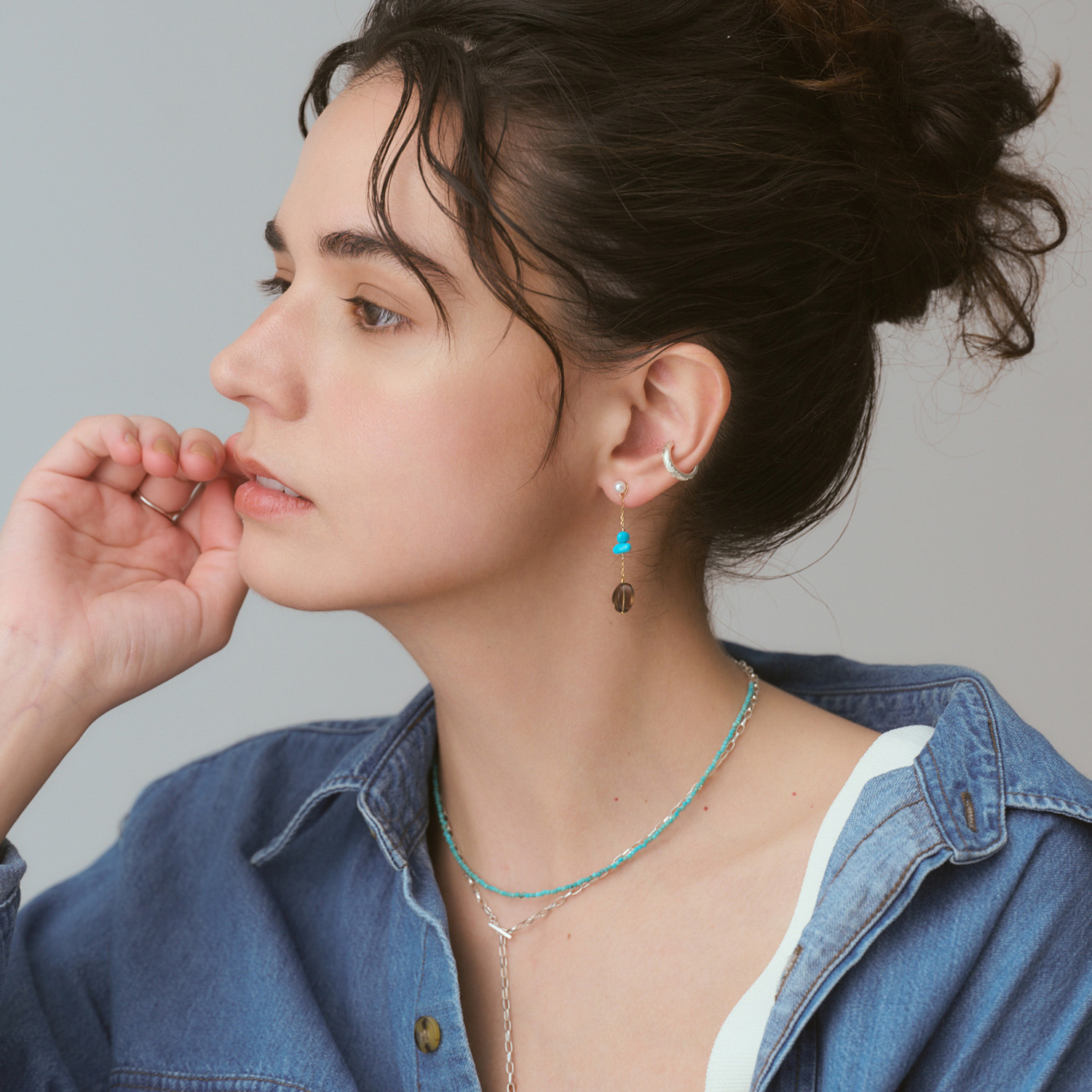 款号:1026211711198 材质: 9K金(圆环)×包金(螺旋线)×S925银(镀金:黄金色、链条)×水晶(烟晶)×绿松石