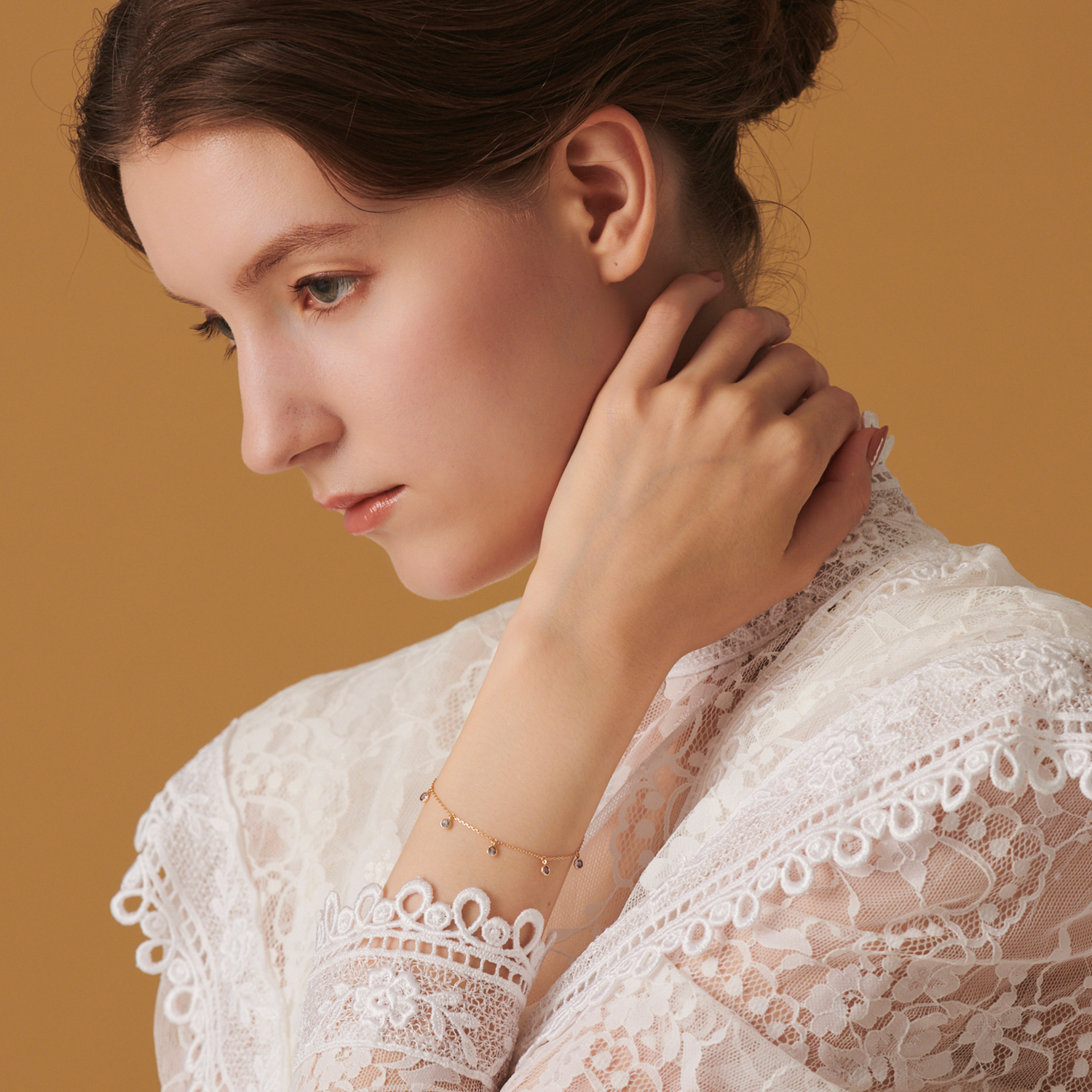 为每一位女性的梦想守护和助威,12月诞生石,精选天然宝石,让手腕间色彩斑斓,闪耀着低调的色彩之美。非常推荐给初次尝试彩色宝石的顾客,通过小小的宝石感受色彩带来的喜悦。而每一颗生日月的宝石蕴藏着守护的能量,为不同年龄、不同人生阶段的女性助喊纳威。手链点缀于腕间,非常华丽灵动。可以和同系列的手链叠戴,也可以和其他手链叠加。色彩×色彩,色彩×金银,玩转色彩搭配之趣。全长:16.5cm