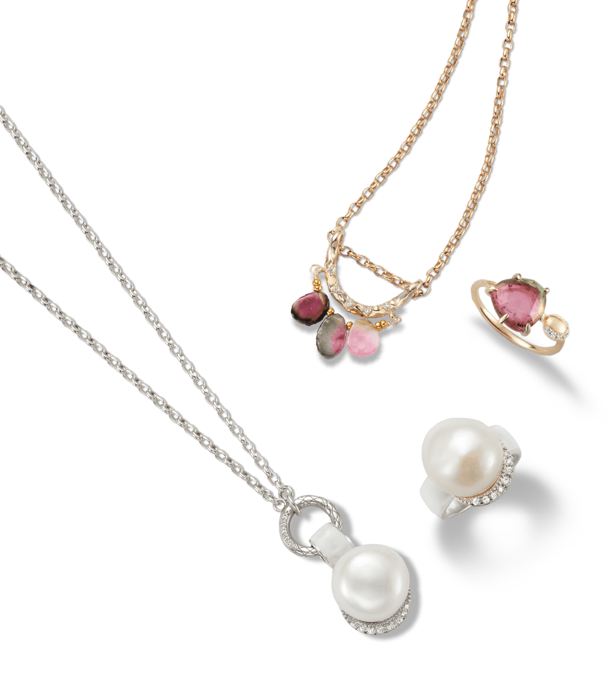大粒珍珠与七宝烧交织演绎的「白」之对比